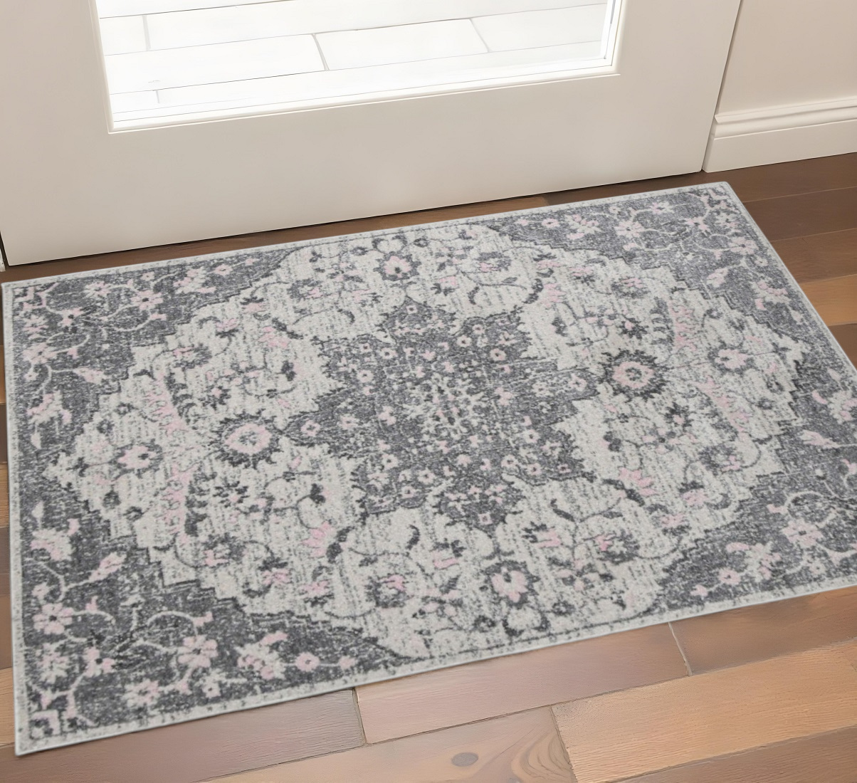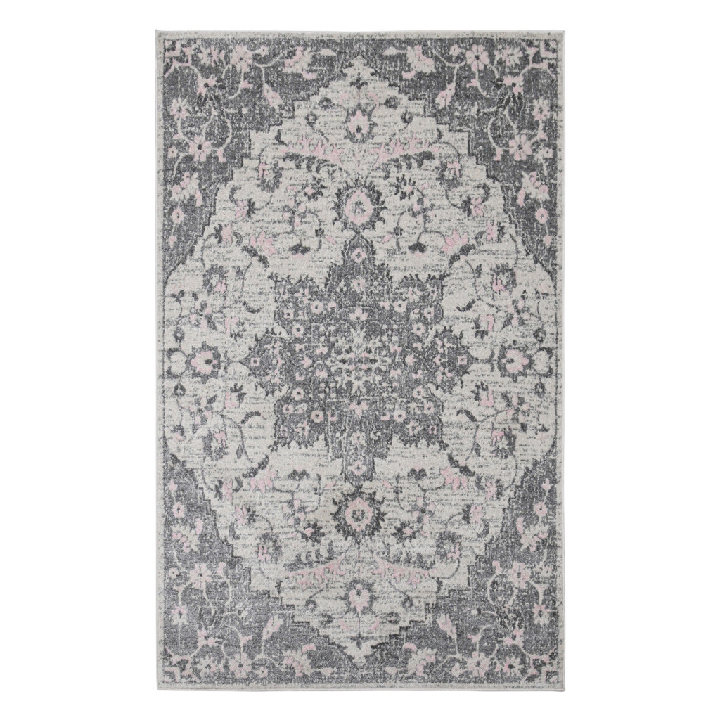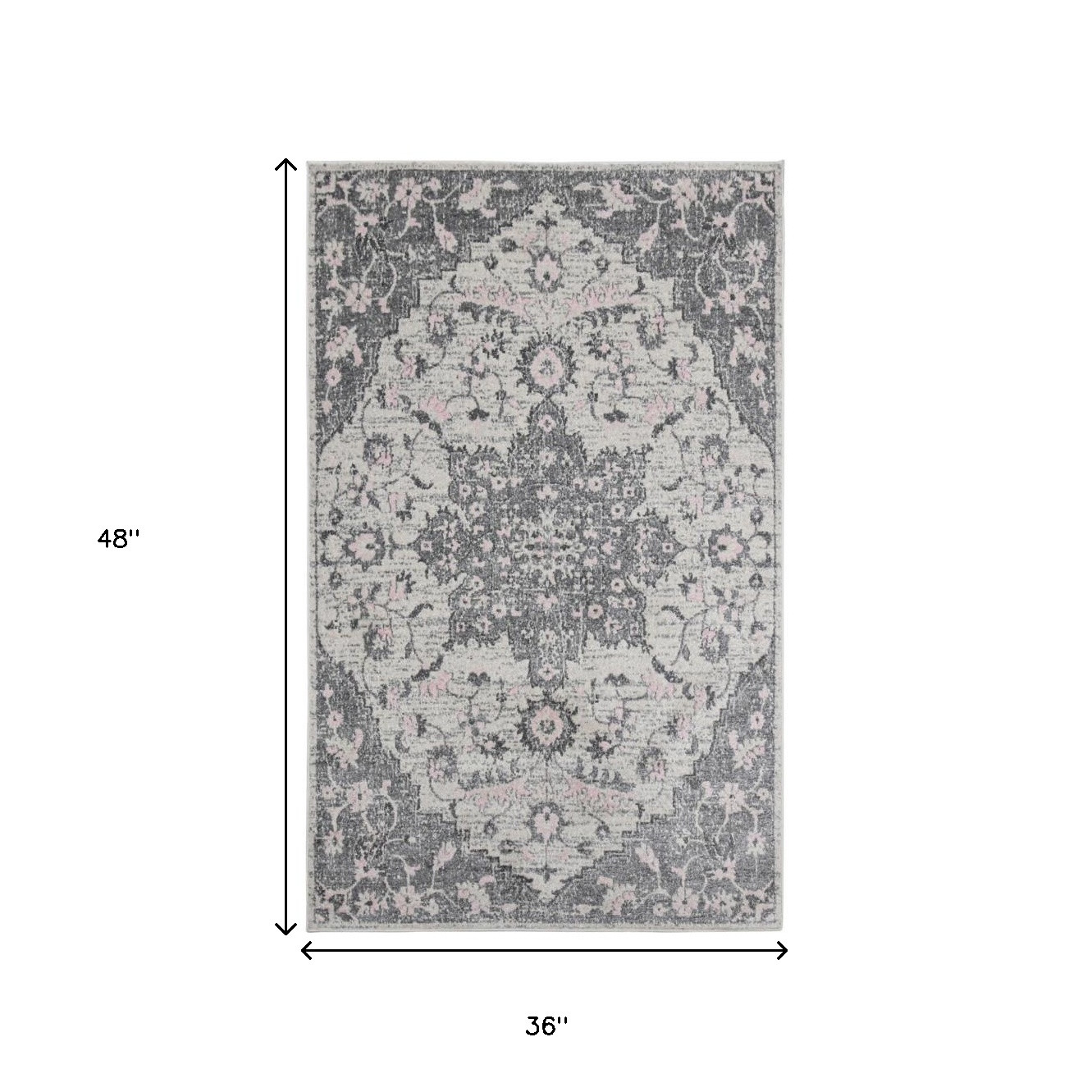 This 3-foot x 4-foot gray and dark gray medallion distressed area rug, is a great way to add warmth to a room. Ideal for spaces with kids and pets, this rug is stain resistant to help repel dirt and spilled liquids. Built to last, this rug crafted from polypropylene fibers is known for its durability and long lasting appeal. Rugs are a great way to showcase your style, hide imperfections, warm your home and reduce noise. This smaller sized, transitional styled rug is just what you need for your walkway, bedside, in front of door, cabinet, refrigerator, or chair. 36.00-inch h x 48.00-inch w x 0.38-inch d.