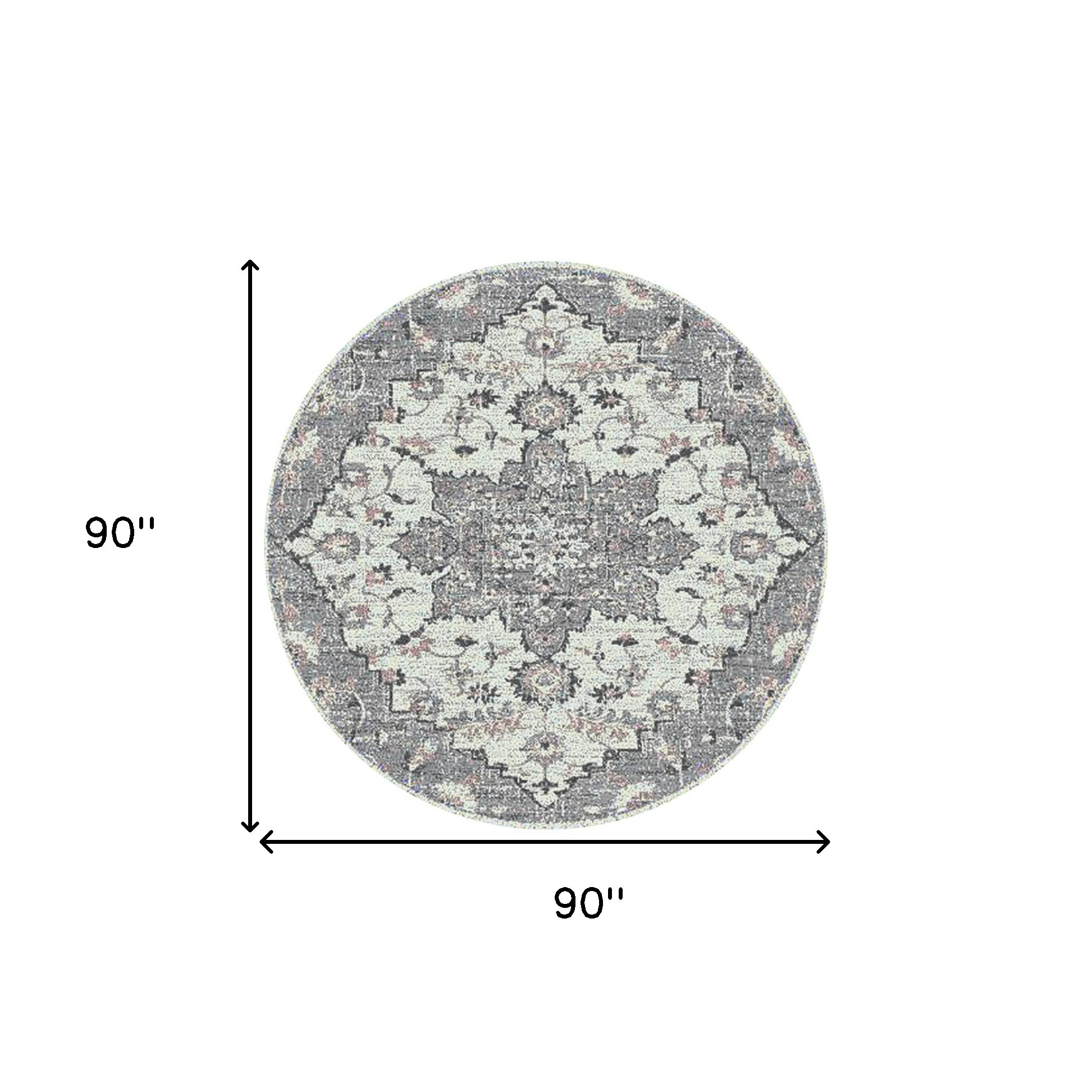 Set an inviting tone in your space with this 8-foot x 8-foot gray and dark gray area rug. Ideal for spaces with kids and pets, this rug is stain resistant to help repel dirt and spilled liquids. Built to last, this rug crafted from polypropylene fibers is known for its durability and long lasting appeal. Rugs are a great way to showcase your style, hide imperfections, warm your home and reduce noise. This larger sized, transitional styled rug is ready to create a focal point or statement piece in your room. 90.00-inch h x 90.00-inch w x 0.38-inch d.