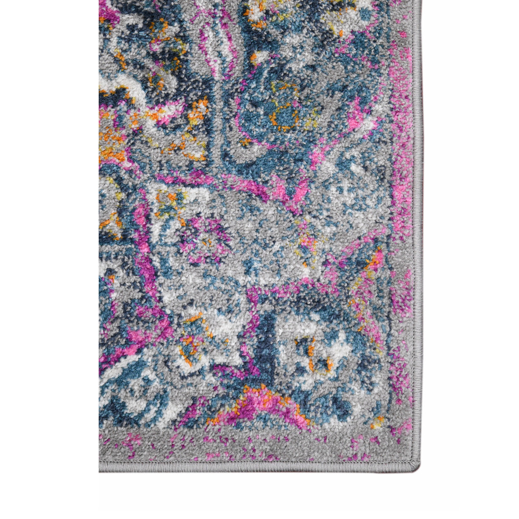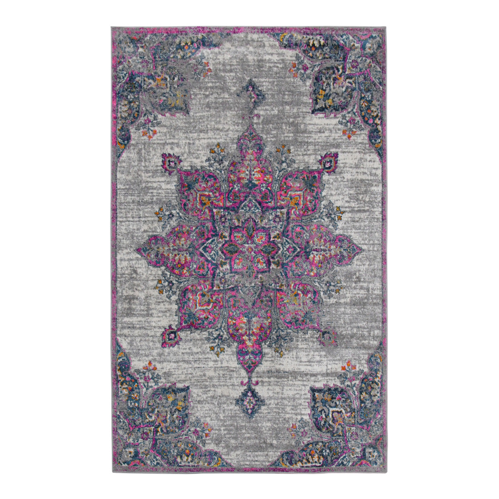 Add great coloration and comfortable texture to your space with this 2-foot x 3-foot pink gray and blue area rug. Ideal for spaces with kids and pets, this rug is stain resistant to help repel dirt and spilled liquids. Built to last, this rug crafted from polypropylene fibers is known for its durability and long lasting appeal. Rugs are a great way to showcase your style, hide imperfections, warm your home and reduce noise. 24.00-inch h x 36.00-inch w x 0.38-inch d.