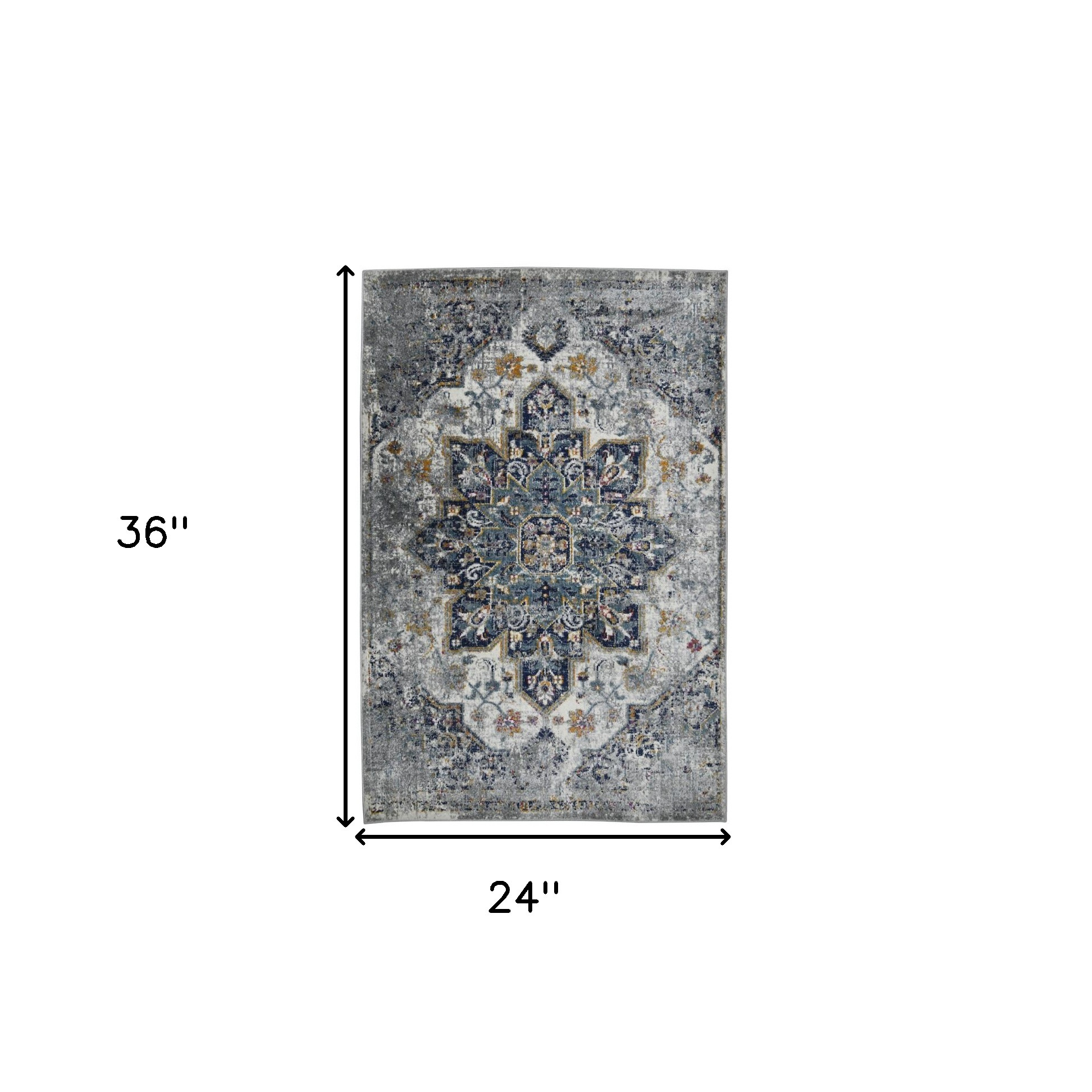 Add great coloration and comfortable texture to your space with this 2-foot x 3-foot gray blue and brown area rug. Ideal for spaces with kids and pets, this rug is stain resistant to help repel dirt and spilled liquids. Built to last, this rug crafted from polypropylene fibers is known for its durability and long lasting appeal. Rugs are a great way to showcase your style, hide imperfections, warm your home and reduce noise. 24.00-inch h x 36.00-inch w x 0.38-inch d.