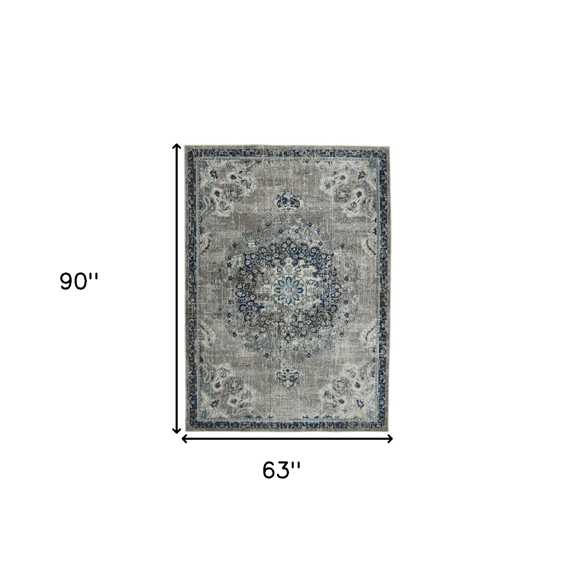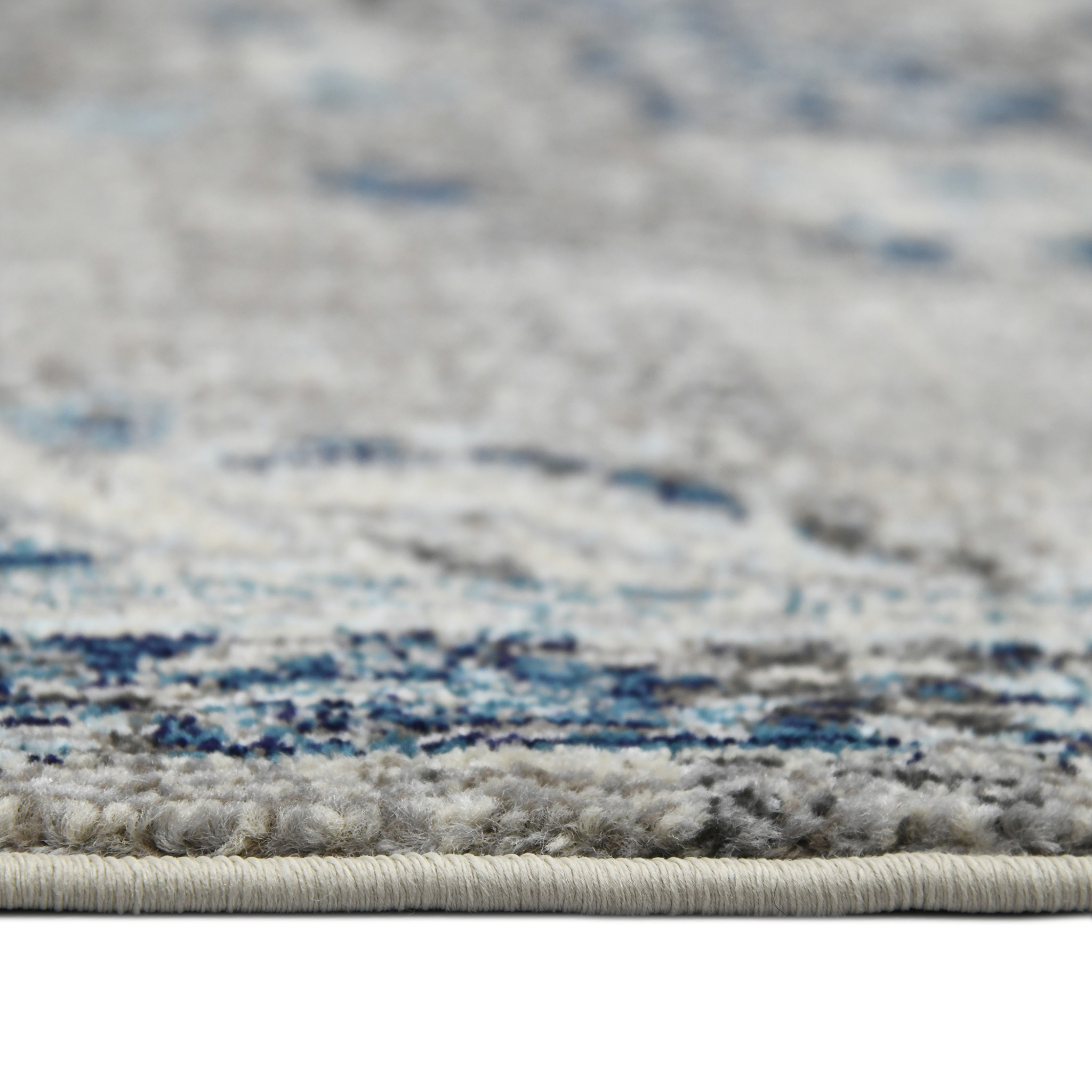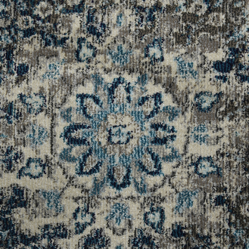Add some artistry to your room with this 5-foot x 7-foot teal gray and ivory area rug. Ideal for spaces with kids and pets, this rug is stain resistant to help repel dirt and spilled liquids. Built to last, this rug crafted from polypropylene fibers is known for its durability and long lasting appeal. Rugs are a great way to showcase your style, hide imperfections, warm your home and reduce noise. This larger sized, bohemian styled rug is ready to create a focal point or statement piece in your room. 63.00-inch h x 90.00-inch w x 0.38-inch d.
