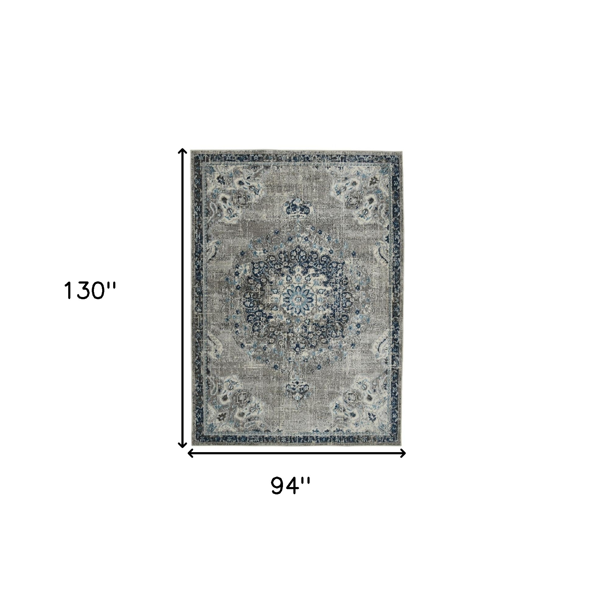 Add some artistry to your room with this 8-foot x 11-foot teal gray and ivory area rug. Ideal for spaces with kids and pets, this rug is stain resistant to help repel dirt and spilled liquids. Built to last, this rug crafted from polypropylene fibers is known for its durability and long lasting appeal. Rugs are a great way to showcase your style, hide imperfections, warm your home and reduce noise. This larger sized, bohemian styled rug is ready to create a focal point or statement piece in your room. 94.00-inch h x 130.00-inch w x 0.38-inch d.