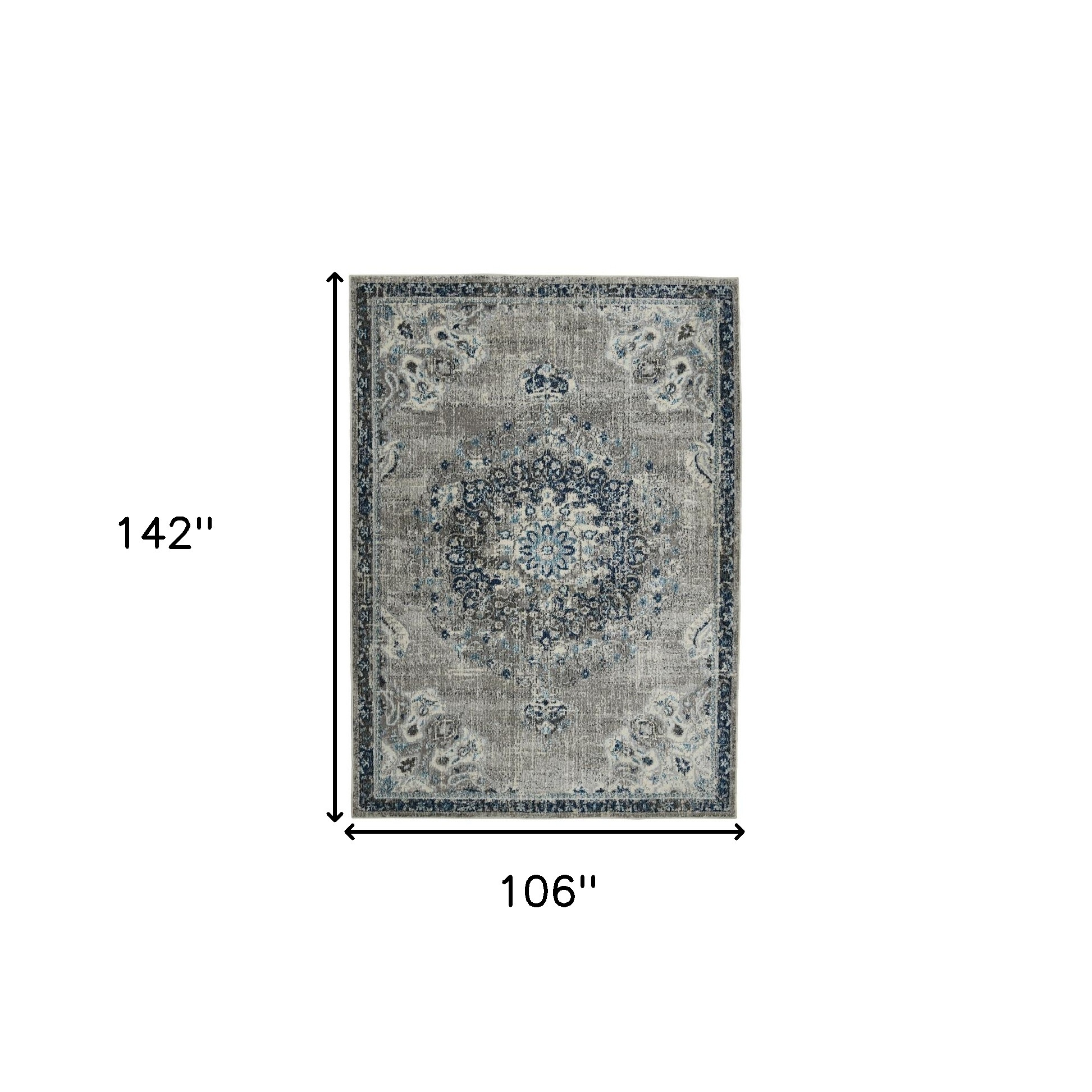 Add great coloration and comfortable texture to your space with this 9-foot x 12-foot teal gray and ivory area rug. Ideal for spaces with kids and pets, this rug is stain resistant to help repel dirt and spilled liquids. Built to last, this rug crafted from polypropylene fibers is known for its durability and long lasting appeal. Rugs are a great way to showcase your style, hide imperfections, warm your home and reduce noise. This larger sized, bohemian styled rug is ready to create a focal point or statement piece in your room. 106.00-inch h x 142.00-inch w x 0.38-inch d.