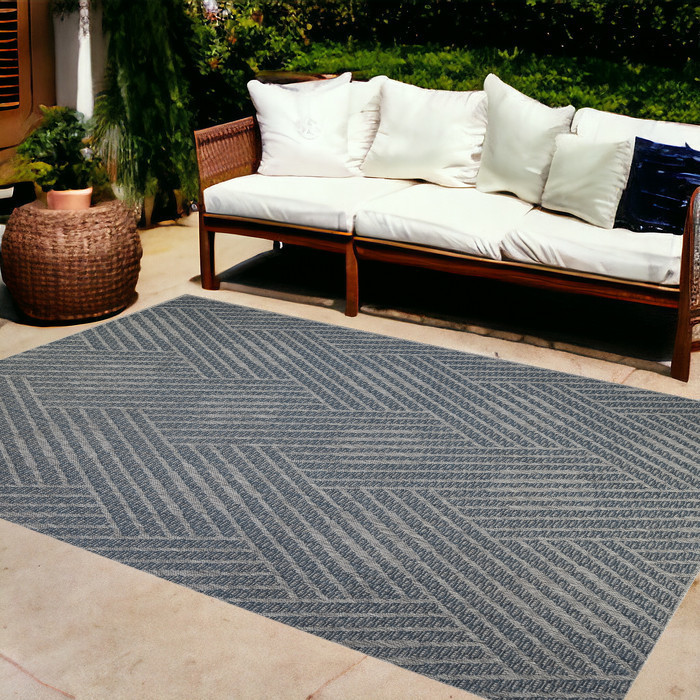 Set an inviting tone in your space with this 8-foot x 10-foot gray and blue geometric stain resistant indoor outdoor area rug. This rectangle shaped rug features a geometric design in gray and blue to give it visual interest. A classic shape marries with good looking design for your space ideal for spaces with kids and pets, this rug is stain resistant to help repel stains and spilled liquids. Place this area rug against a hardwood or tile floor and it will enliven your living space with style and sophistication. 96-inch H x 120-inch W x 0.02-inch D