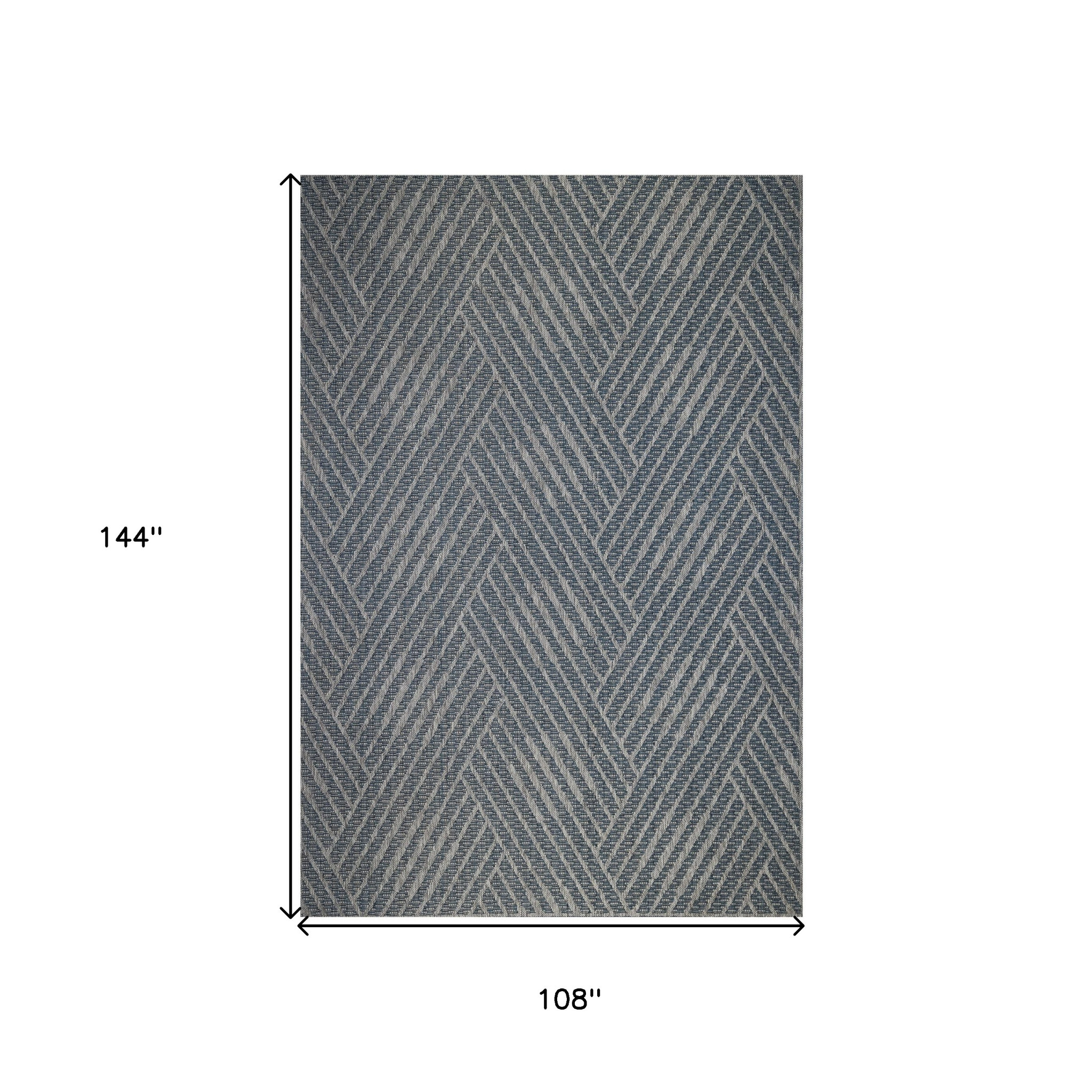 Add great coloration and comfortable texture to your space with this 9-foot x 12-foot gray and blue geometric stain resistant indoor outdoor area rug. This rectangle shaped rug features a geometric design in gray and blue to give it visual interest. A classic shape marries with good looking design for your space ideal for spaces with kids and pets, this rug is stain resistant to help repel stains and spilled liquids. Place this area rug against a hardwood or tile floor and it will enliven your living space with style and sophistication. 108-inch H x 144-inch W x 0.02-inch D