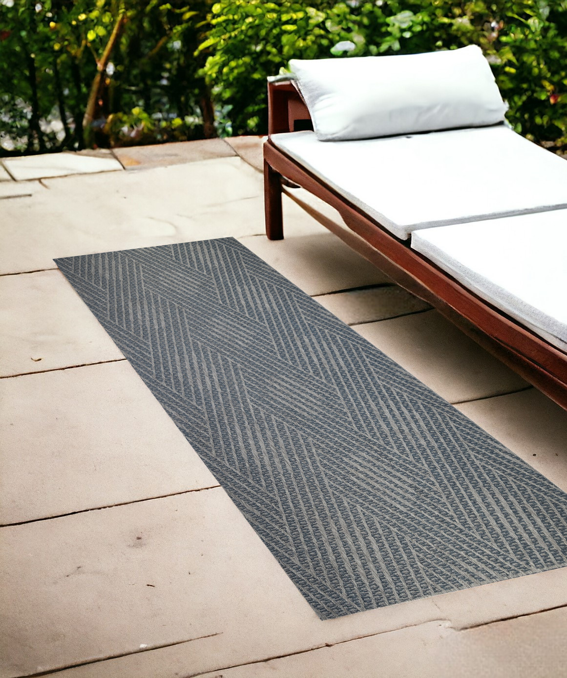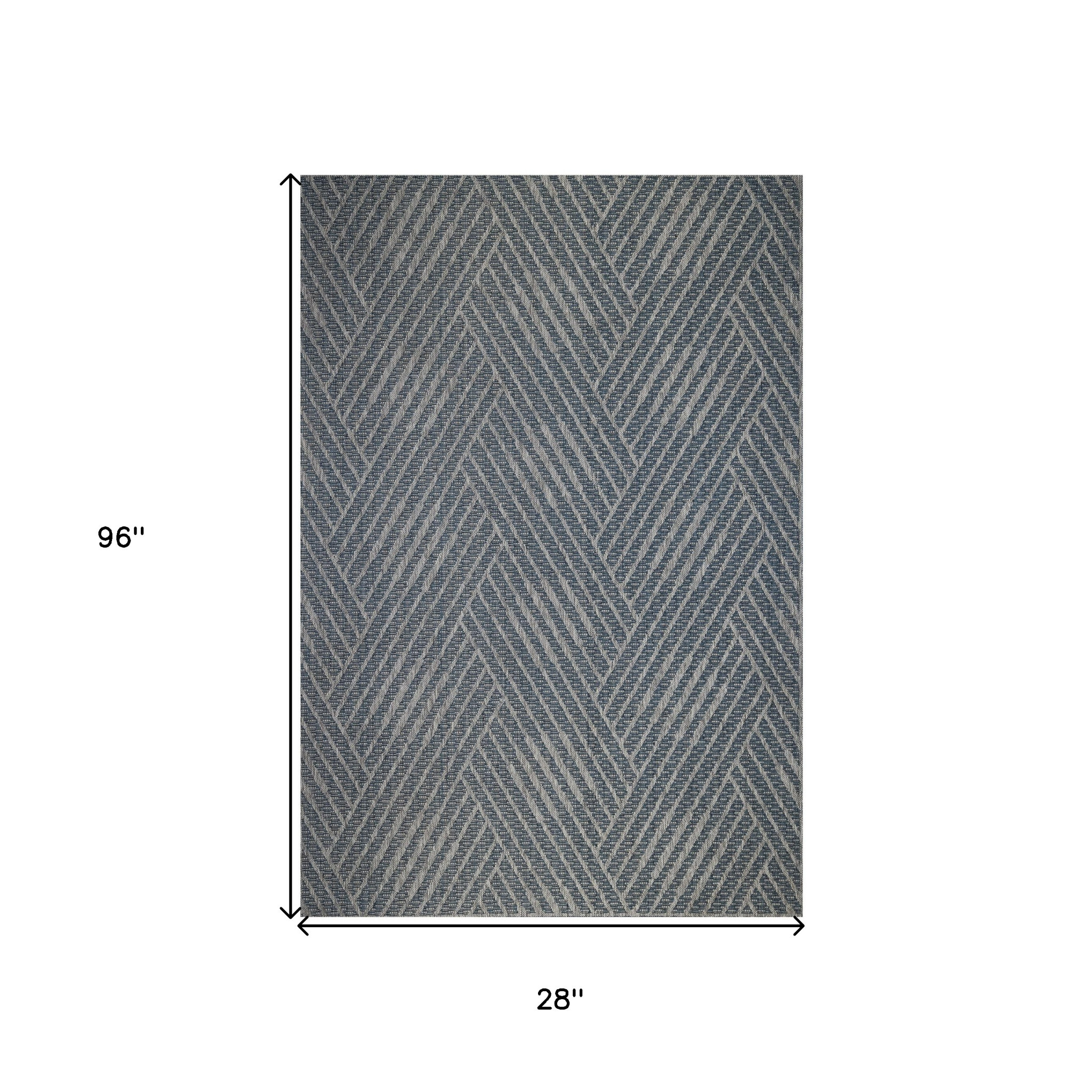 Add some artistry to your room with this 8-foot runner gray and blue geometric stain resistant indoor outdoor runner rug. This runner shaped rug features a geometric design in gray and blue to give it visual interest. A classic shape marries with good looking design for your space ideal for spaces with kids and pets, this rug is stain resistant to help repel stains and spilled liquids. Place this area rug against a hardwood or tile floor and it will enliven your living space with style and sophistication. 28-inch H x 96-inch W x 0.02-inch D