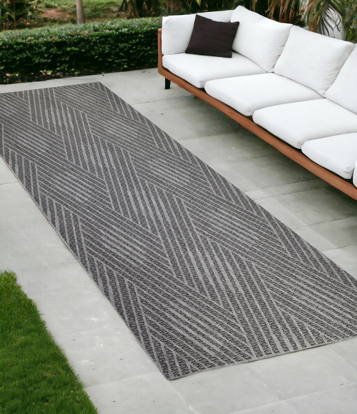 outdoor runner rug, resistant indoor outdoor runner rug, indoor outdoor runner rug, stain resistant indoor outdoor runner, runner gray blue geometric stain |