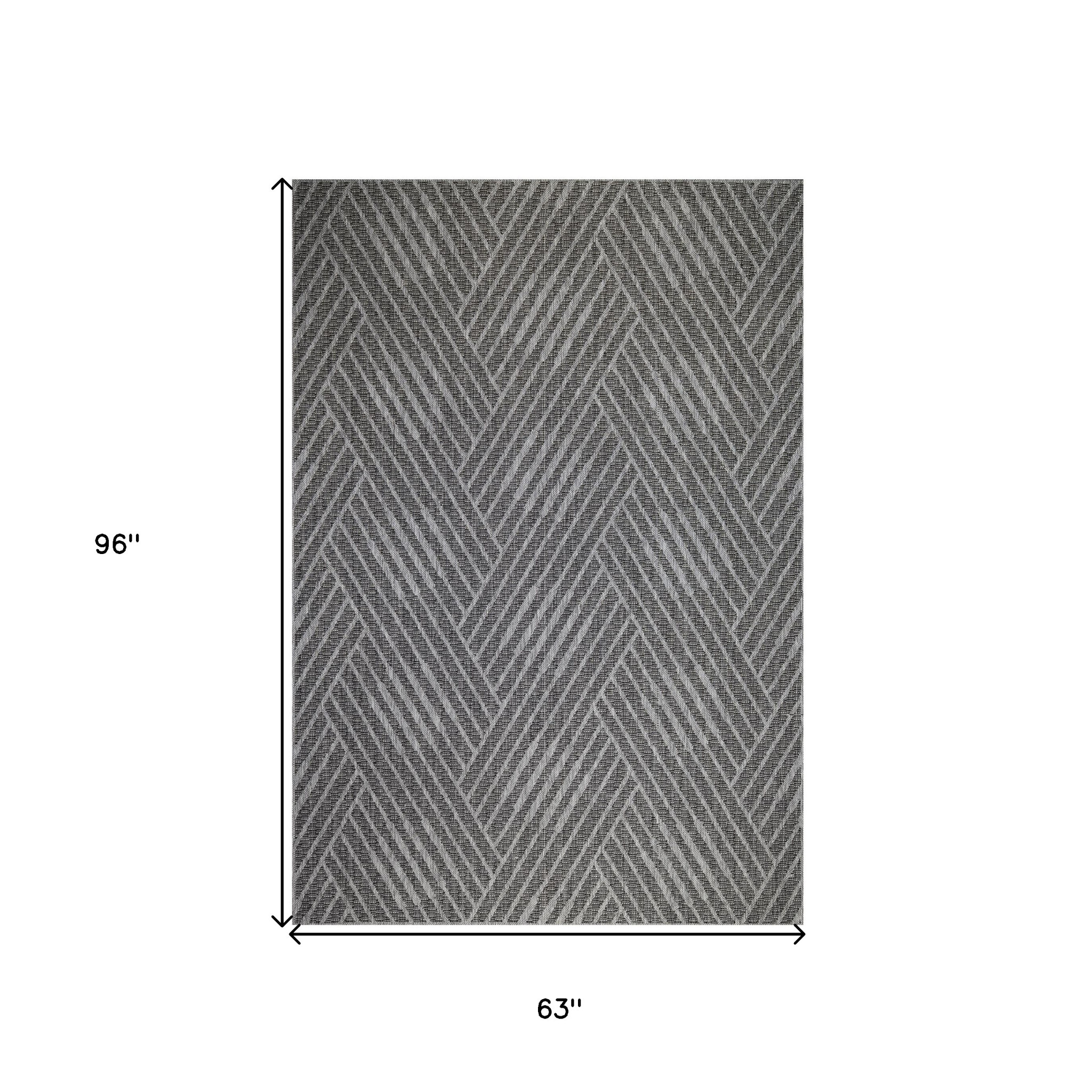 This 5-foot x 8-foot gray and blue geometric stain resistant indoor outdoor area rug, is a great way to add warmth to a room. This rectangle shaped rug features a geometric design in gray and blue to give it visual interest. A classic shape marries with good looking design for your space ideal for spaces with kids and pets, this rug is stain resistant to help repel stains and spilled liquids. Area rugs help to give warmth and sense of home to your space. 63-inch H x 96-inch W x 0.02-inch D