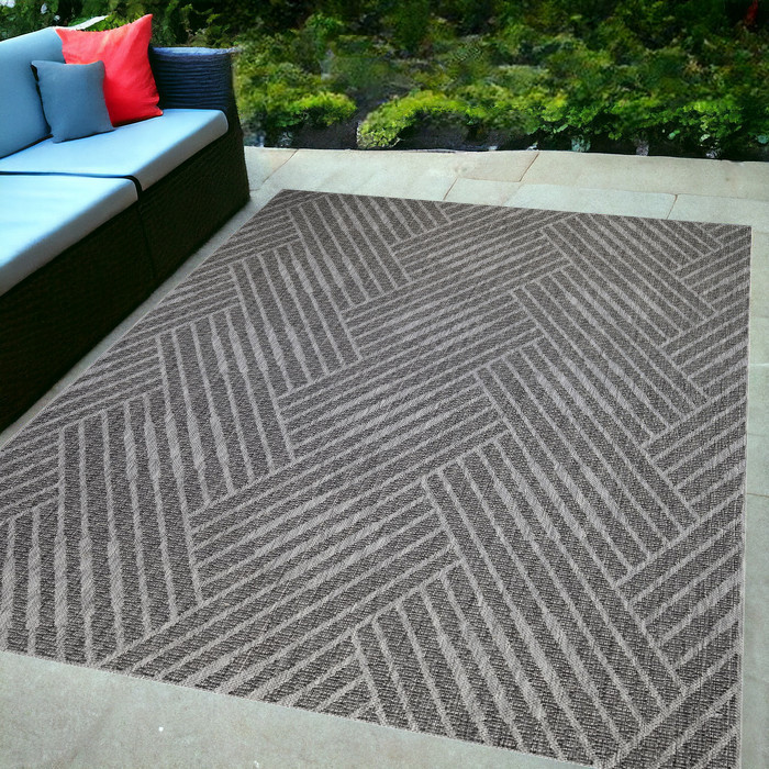 Set an inviting tone in your space with this 6-foot x 9-foot gray and blue geometric stain resistant indoor outdoor area rug. This rectangle shaped rug features a geometric design in gray and blue to give it visual interest. A classic shape marries with good looking design for your space ideal for spaces with kids and pets, this rug is stain resistant to help repel stains and spilled liquids. Place this area rug against a hardwood or tile floor and it will enliven your living space with style and sophistication. 78-inch H x 118-inch W x 0.02-inch D