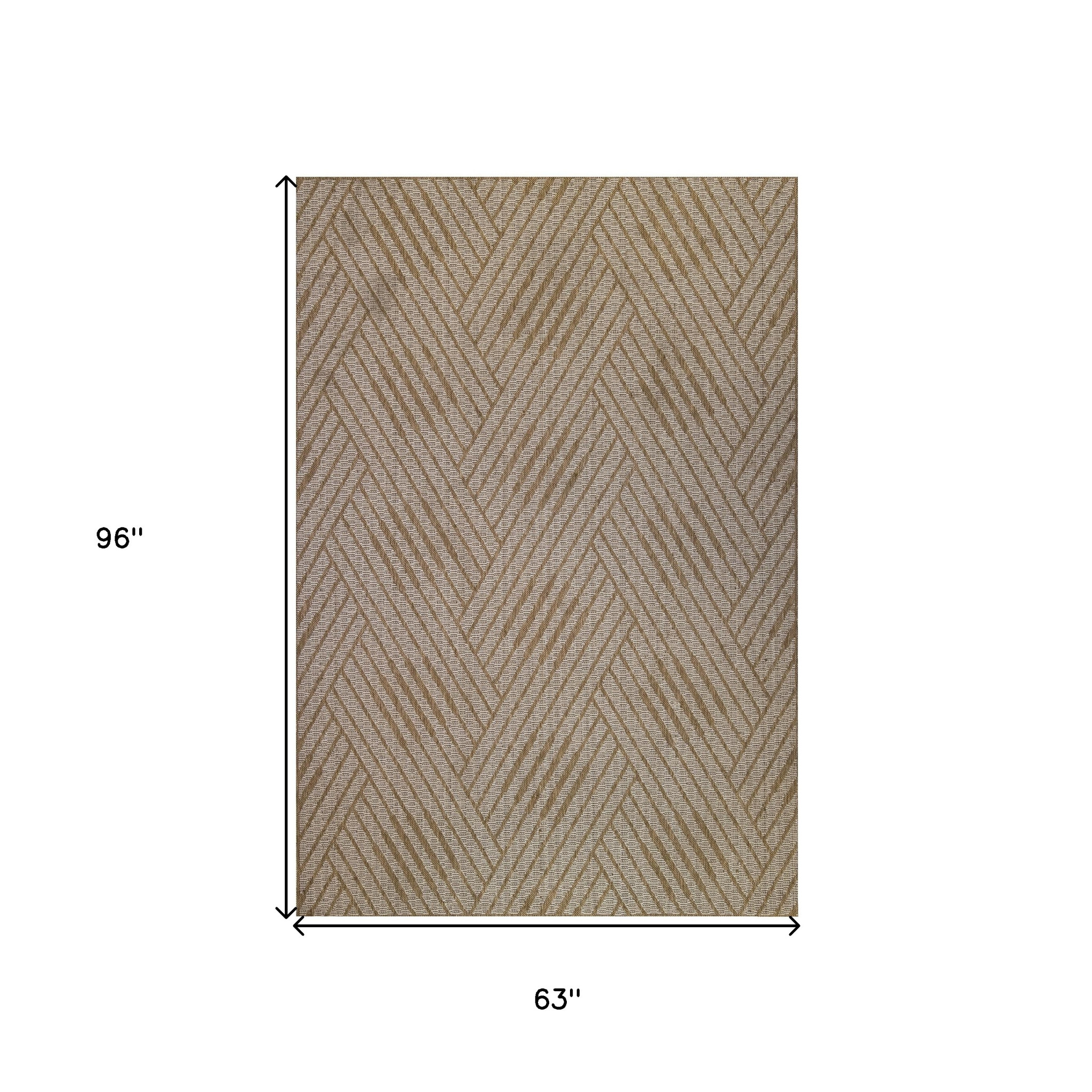 This 5-foot x 8-foot beige geometric stain resistant indoor outdoor area rug, is a great way to add warmth to a room. This rectangle shaped rug features a geometric design in beige to give it visual interest. A classic shape marries with good looking design for your space the coloring of this rug adds a delightfully neutral tone to your home and will easily match with most any decor. Ideal for spaces with kids and pets, this rug is stain resistant to help repel stains and spilled liquids. Place this area rug against a hardwood or tile floor and it will enliven your living space with style and sophistication. 63-inch H x 96-inch W x 0.02-inch D