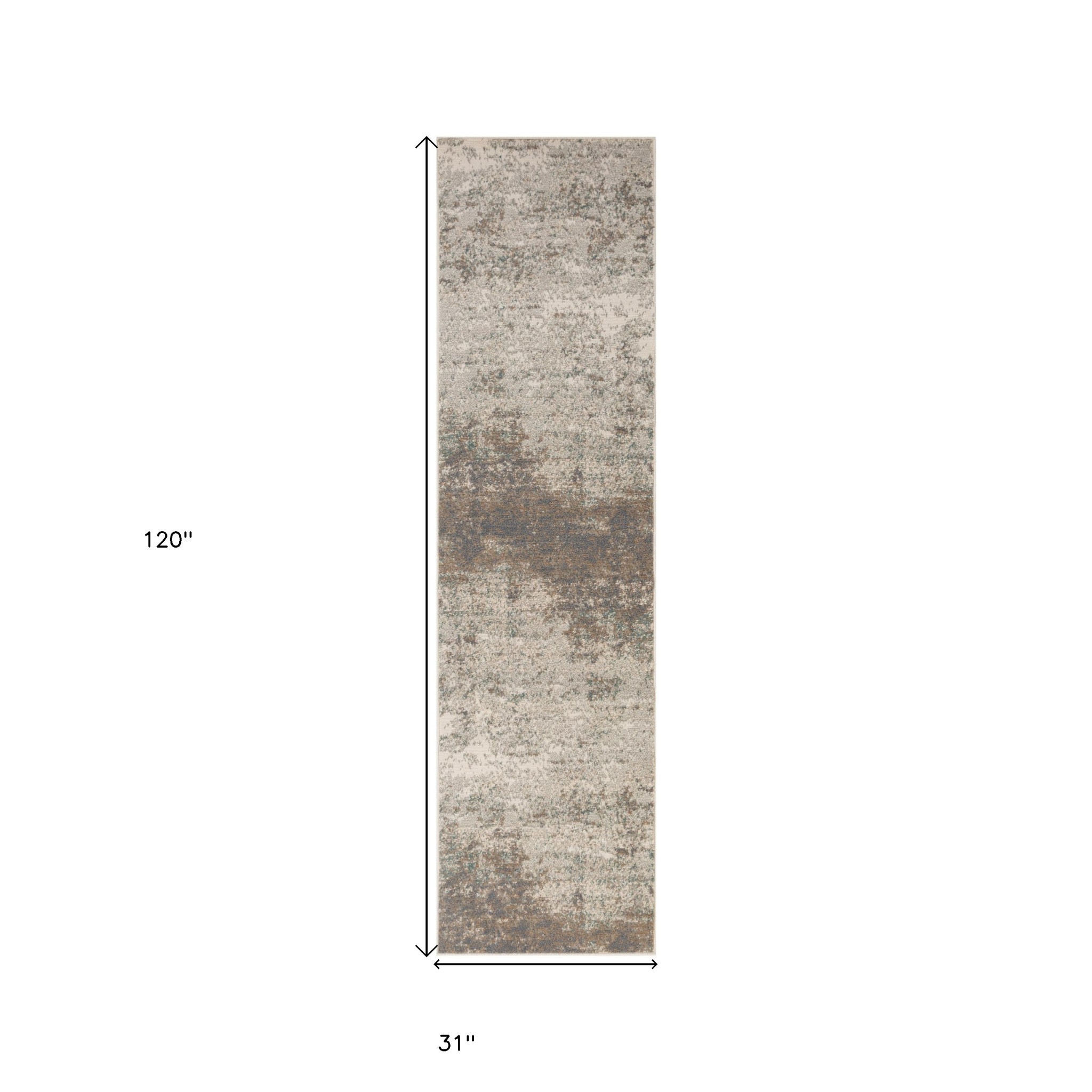 Set an inviting tone in your space with this 10-foot gray and dark gray abstract power loom runner rug. This runner shaped rug features a abstract design in gray and dark gray to give it visual interest. A classic shape marries with good looking design for your space ideal for spaces with kids and pets, this rug is stain resistant to help repel stains and spilled liquids. Place this area rug against a hardwood or tile floor and it will enliven your living space with style and sophistication. 31-inch H x 120-inch W x 0.32-inch D