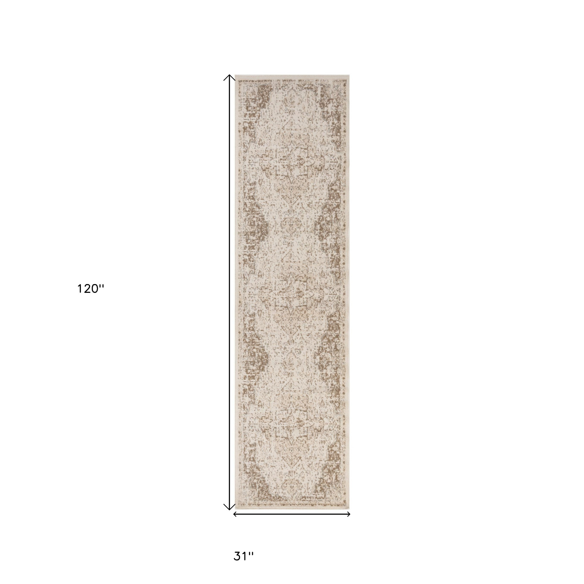 Add some artistry to your room with this 10-foot cream and brown medallion runner rug. Ideal for spaces with kids and pets, this rug is stain resistant to help repel dirt and spilled liquids. Built to last, this rug crafted from polypropylene fibers is known for its durability and long lasting appeal. Rugs are a great way to showcase your style, hide imperfections, warm your home and reduce noise. This traditional style runner makes a great accent for the hallway, in front of cabinets, in the laundry room, or any other space you need a narrow and long rug. 31.00-inch h x 120.00-inch w x 0.32-inch d.