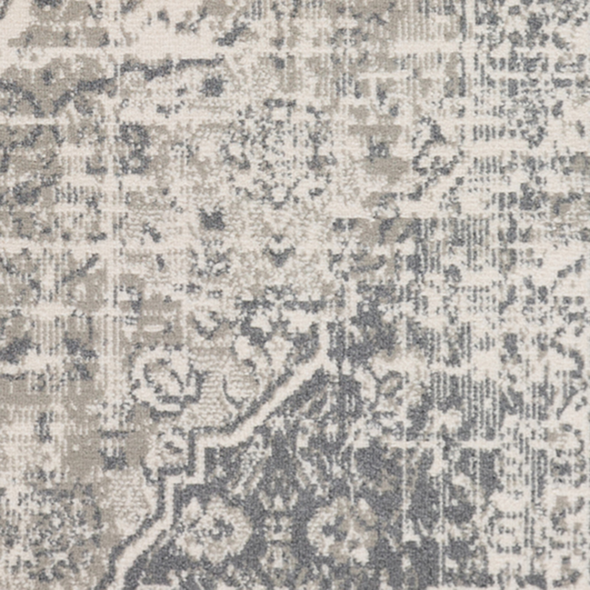 Add great coloration and comfortable texture to your space with this 8-foot gray and ivory medallion round rug. Ideal for spaces with kids and pets, this rug is stain resistant to help repel dirt and spilled liquids. Built to last, this rug crafted from polypropylene fibers is known for its durability and long lasting appeal. Rugs are a great way to showcase your style, hide imperfections, warm your home and reduce noise. This larger sized, contemporary styled rug is ready to create a focal point or statement piece in your room. 94.00-inch h x 94.00-inch w x 0.32-inch d.