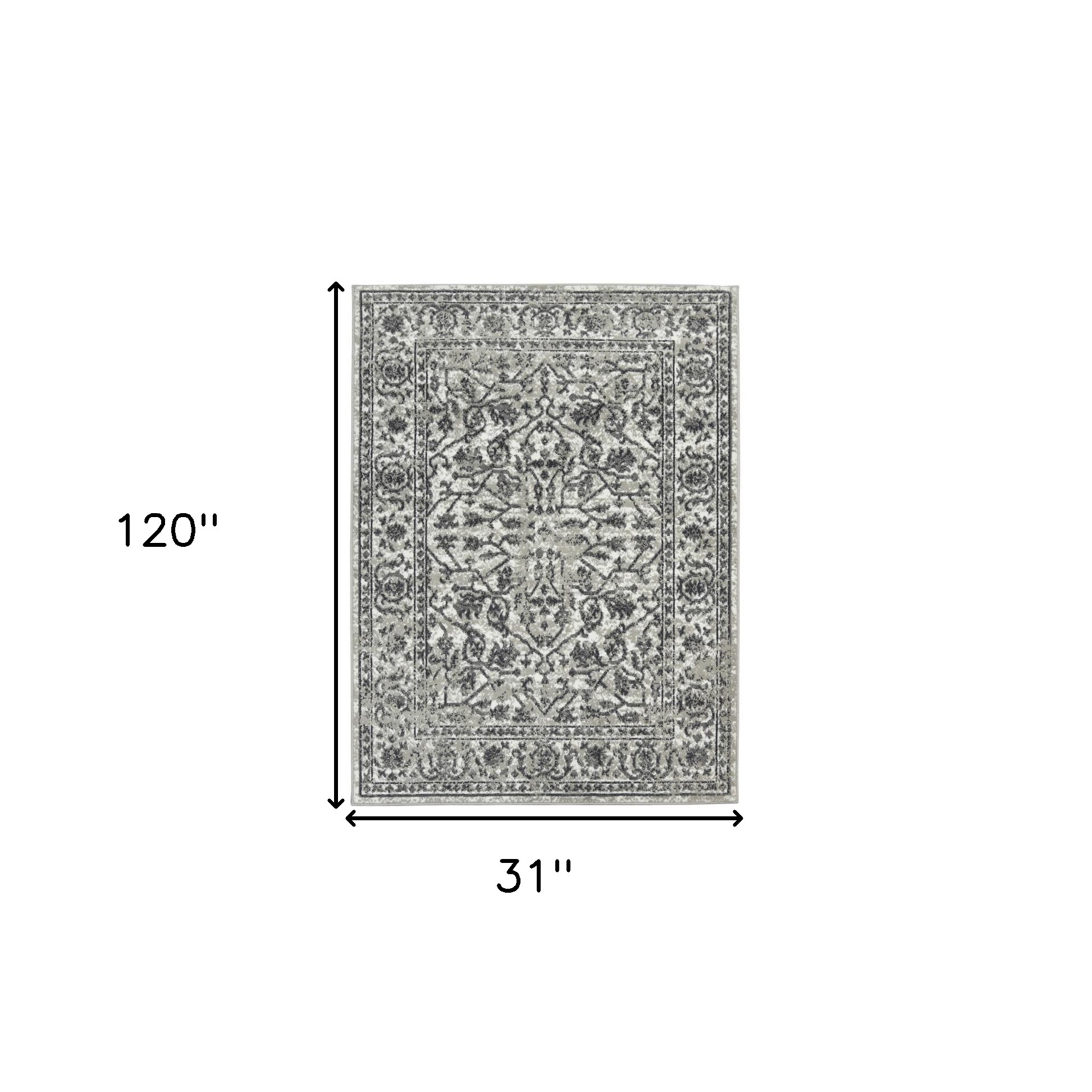 This 10-foot gray and dark gray floral power loom runner rug, is a great way to add warmth to a room. This runner shaped rug features a floral design in gray and dark gray to give it visual interest. A classic shape marries with good looking design for your space ideal for spaces with kids and pets, this rug is stain resistant to help repel stains and spilled liquids. Area rugs help to give warmth and sense of home to your space. 31-inch H x 120-inch W x 0.32-inch D