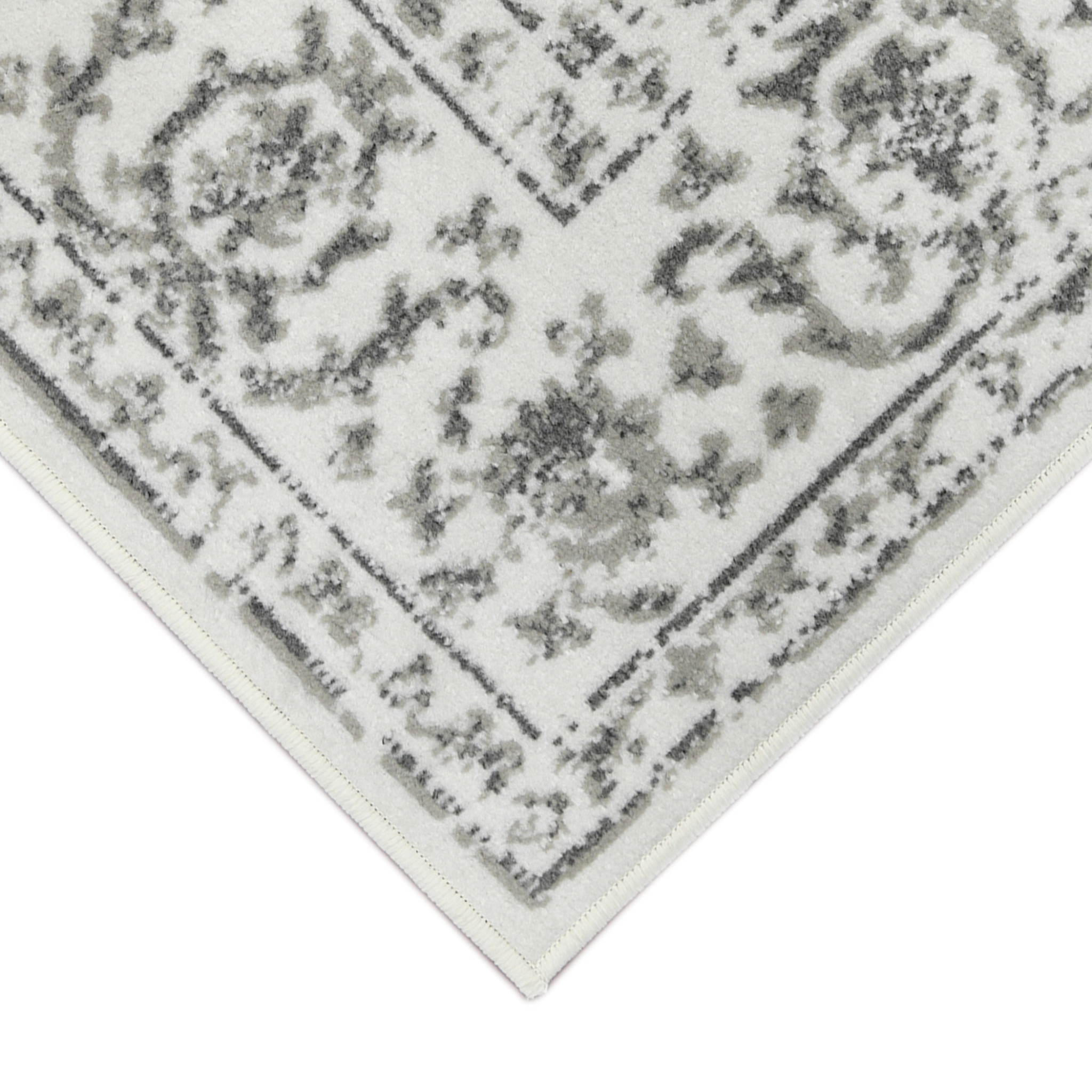 Set an inviting tone in your space with this 5-foot x 8-foot ivory and gray floral area rug. Ideal for spaces with kids and pets, this rug is stain resistant to help repel dirt and spilled liquids. Built to last, this rug crafted from polypropylene fibers is known for its durability and long lasting appeal. Rugs are a great way to showcase your style, hide imperfections, warm your home and reduce noise. This larger sized, contemporary styled rug is ready to create a focal point or statement piece in your room. 63.00-inch h x 90.00-inch w x 0.32-inch d.