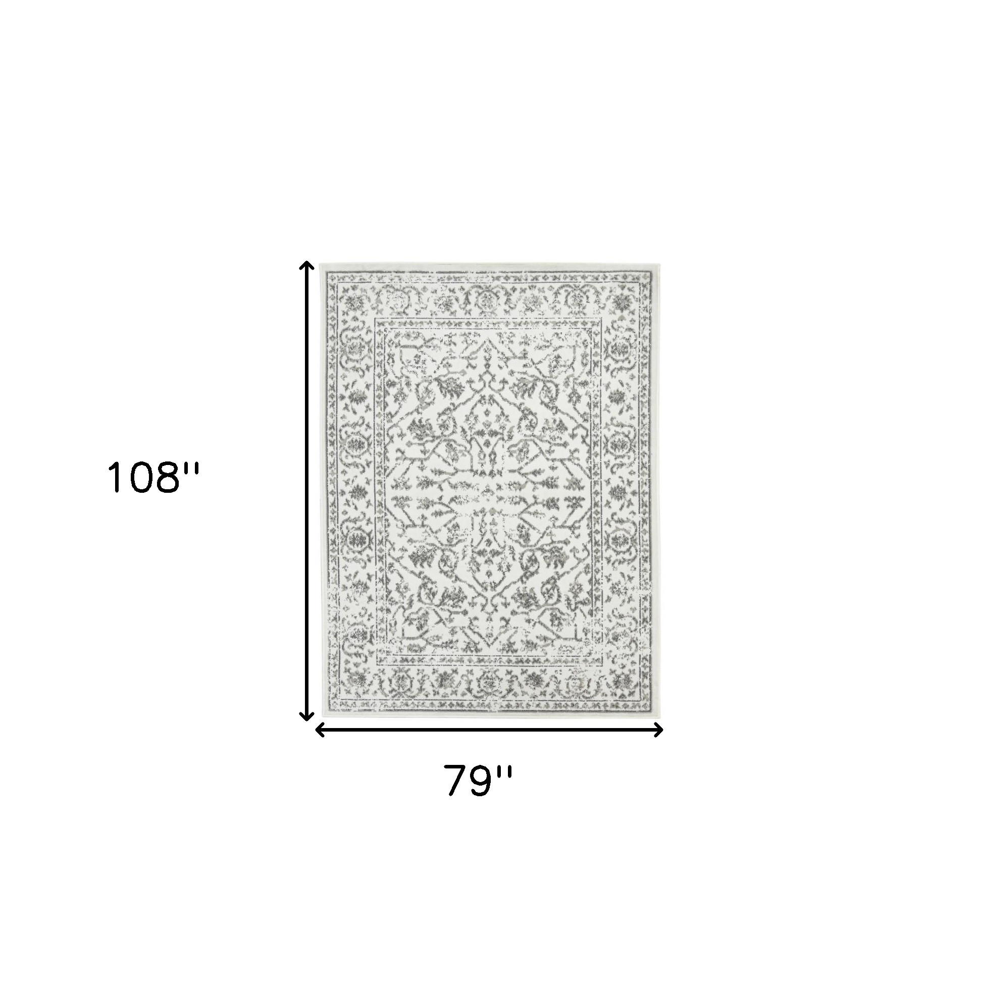 Add some artistry to your room with this 6-foot x 9-foot ivory and gray floral area rug. Ideal for spaces with kids and pets, this rug is stain resistant to help repel dirt and spilled liquids. Built to last, this rug crafted from polypropylene fibers is known for its durability and long lasting appeal. Rugs are a great way to showcase your style, hide imperfections, warm your home and reduce noise. This larger sized, contemporary styled rug is ready to create a focal point or statement piece in your room. 79.00-inch h x 108.00-inch w x 0.32-inch d.