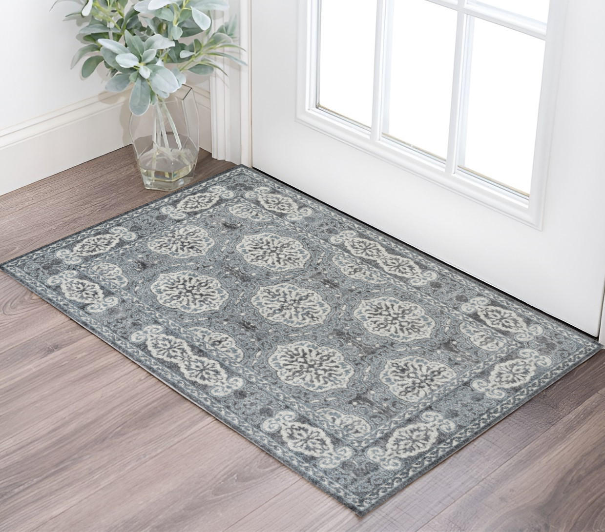 Set an inviting tone in your space with this 2-foot x 3-foot charcoal and ivory medallion power loom area rug. This rectangle shaped rug features a medallion design in charcoal and ivory to give it visual interest. A classic shape marries with good looking design for your space ideal for spaces with kids and pets, this rug is stain resistant to help repel stains and spilled liquids. Place this area rug against a hardwood or tile floor and it will enliven your living space with style and sophistication. 24-inch H x 36-inch W x 0.38-inch D