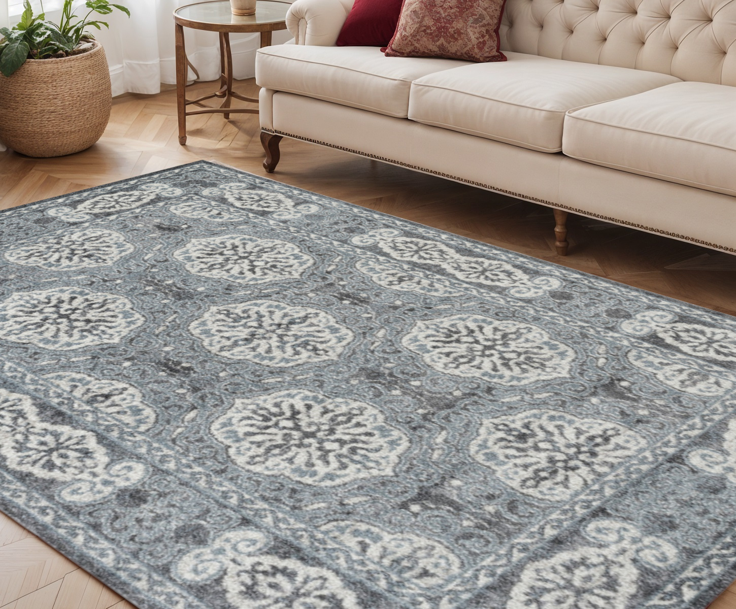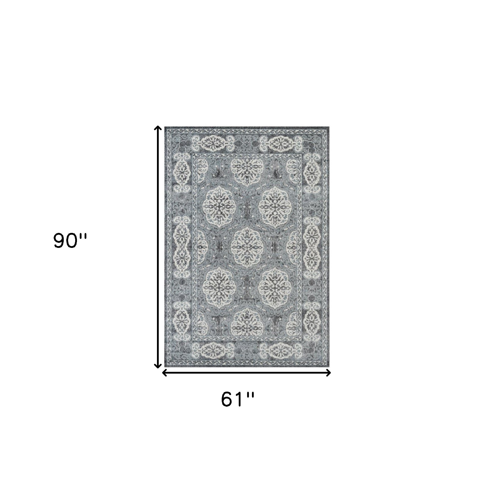 Set an inviting tone in your space with this 5-foot x 8-foot charcoal and ivory medallion power loom area rug. This rectangle shaped rug features a medallion design in charcoal and ivory to give it visual interest. A classic shape marries with good looking design for your space ideal for spaces with kids and pets, this rug is stain resistant to help repel stains and spilled liquids. Area rugs help to give warmth and sense of home to your space. 61-inch H x 90-inch W x 0.38-inch D