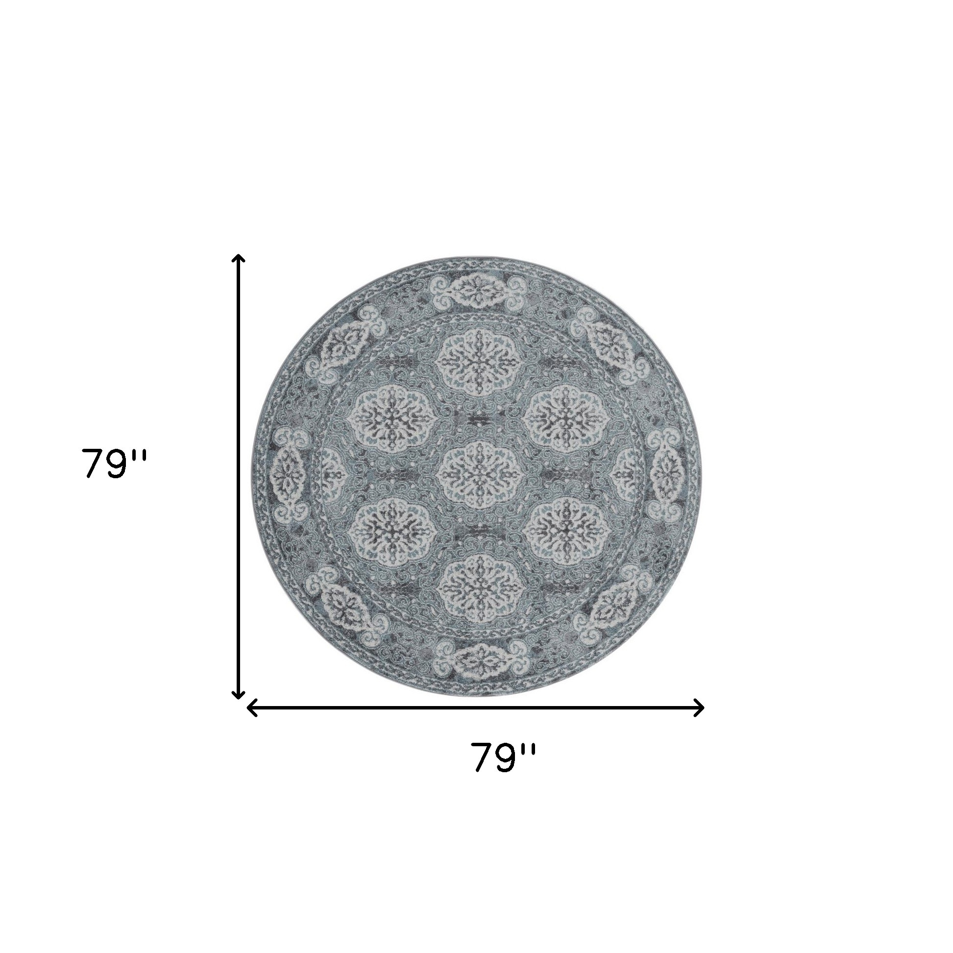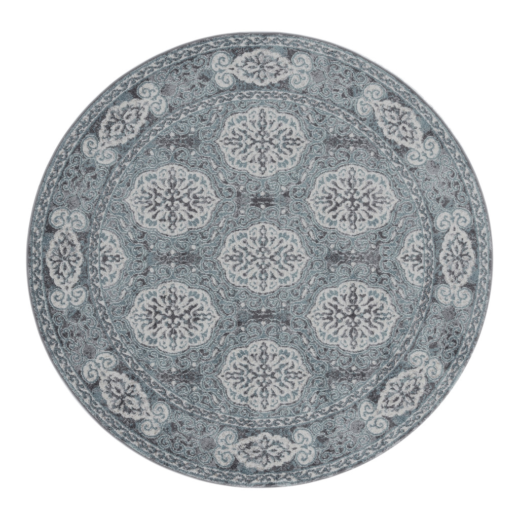 Set an inviting tone in your space with this 6-foot charcoal and ivory medallion round rug. Ideal for spaces with kids and pets, this rug is stain resistant to help repel dirt and spilled liquids. Built to last, this rug crafted from polypropylene fibers is known for its durability and long lasting appeal. Rugs are a great way to showcase your style, hide imperfections, warm your home and reduce noise. This larger sized, contemporary styled rug is ready to create a focal point or statement piece in your room. 79.00-inch h x 79.00-inch w x 0.38-inch d.