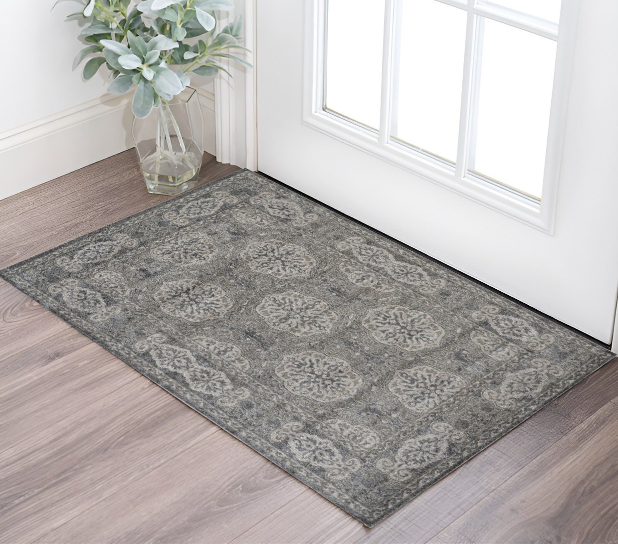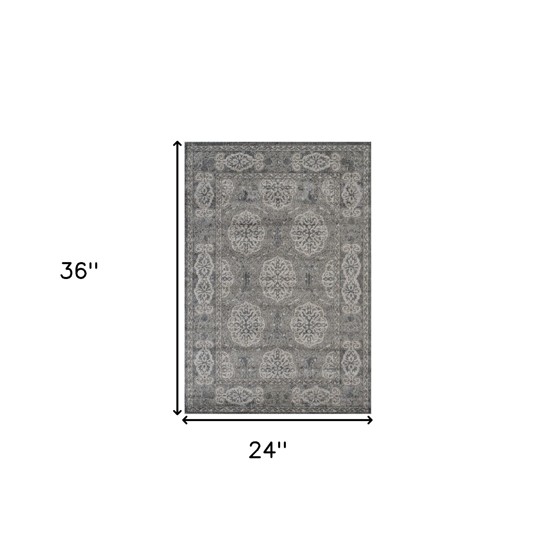 Set an inviting tone in your space with this 2-foot x 3-foot charcoal and gray medallion power loom area rug. This rectangle shaped rug features a medallion design in charcoal and gray to give it visual interest. A classic shape marries with good looking design for your space ideal for spaces with kids and pets, this rug is stain resistant to help repel stains and spilled liquids. Area rugs help to give warmth and sense of home to your space. 24-inch H x 36-inch W x 0.38-inch D
