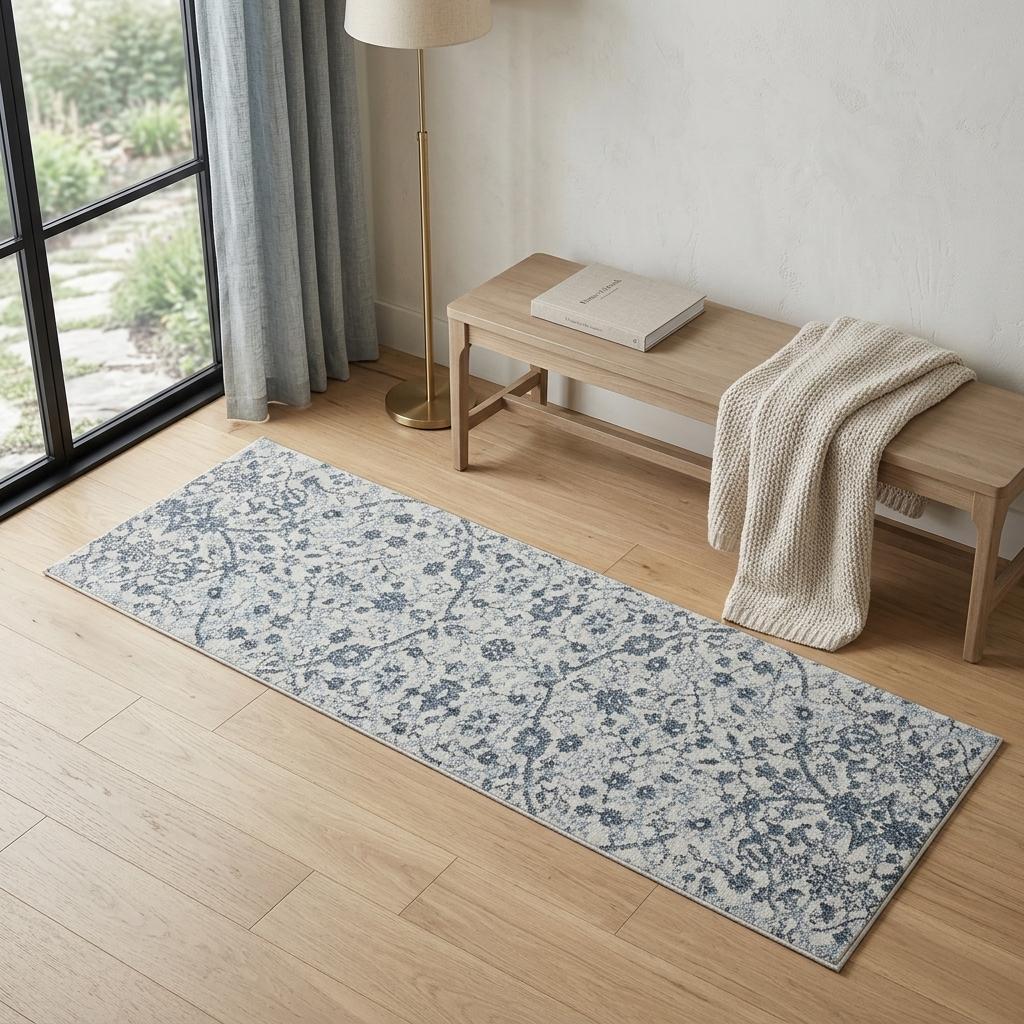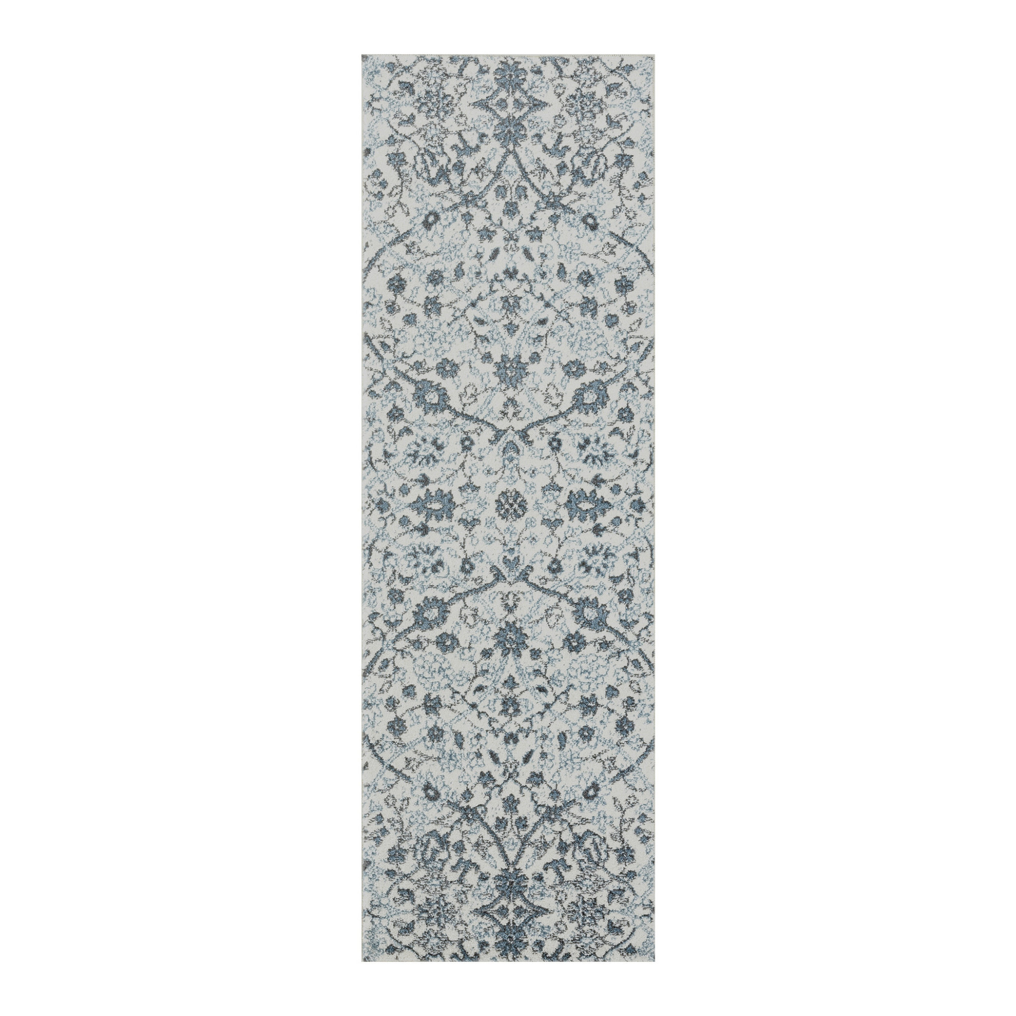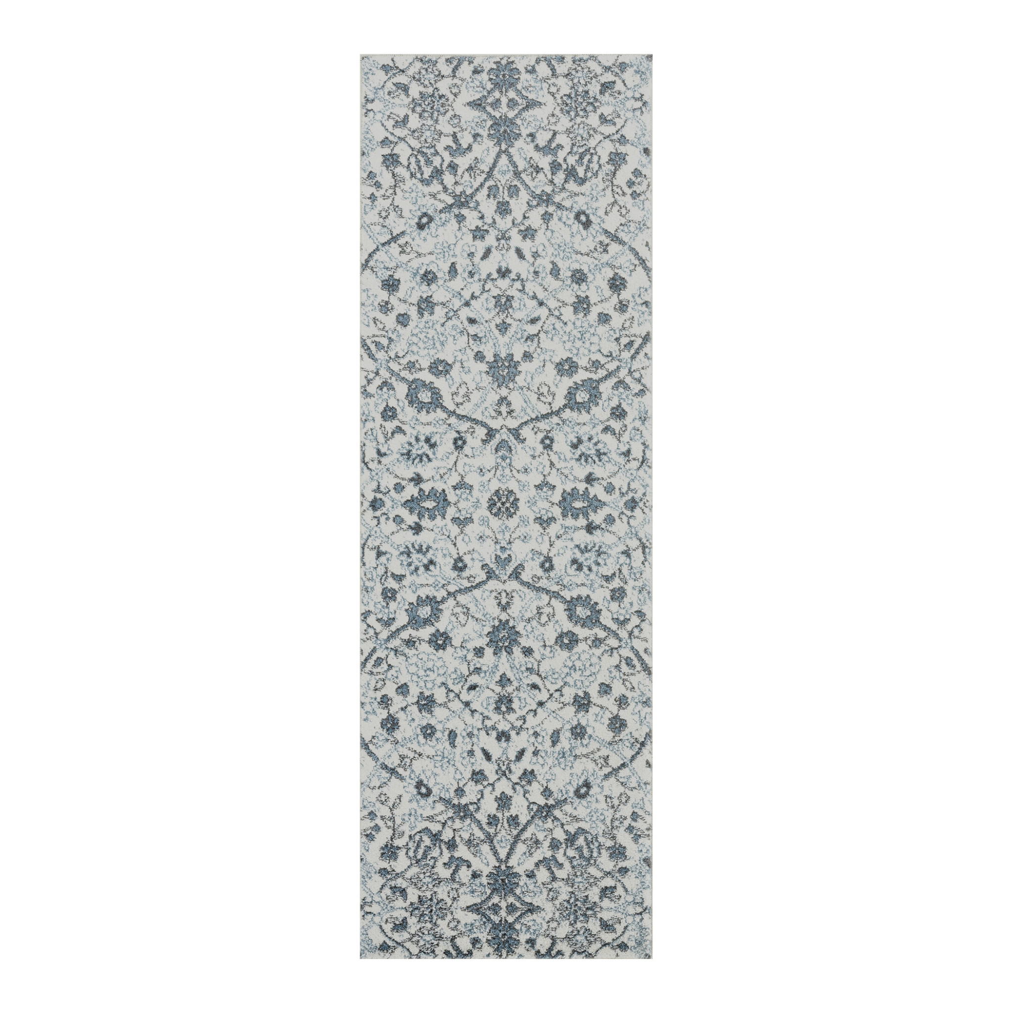 Set an inviting tone in your space with this 6-foot charcoal and gray floral power loom runner rug. This runner shaped rug features a floral design in charcoal and gray to give it visual interest. A classic shape marries with good looking design for your space ideal for spaces with kids and pets, this rug is stain resistant to help repel stains and spilled liquids. Area rugs help to give warmth and sense of home to your space. 24-inch H x 72-inch W x 0.38-inch D
