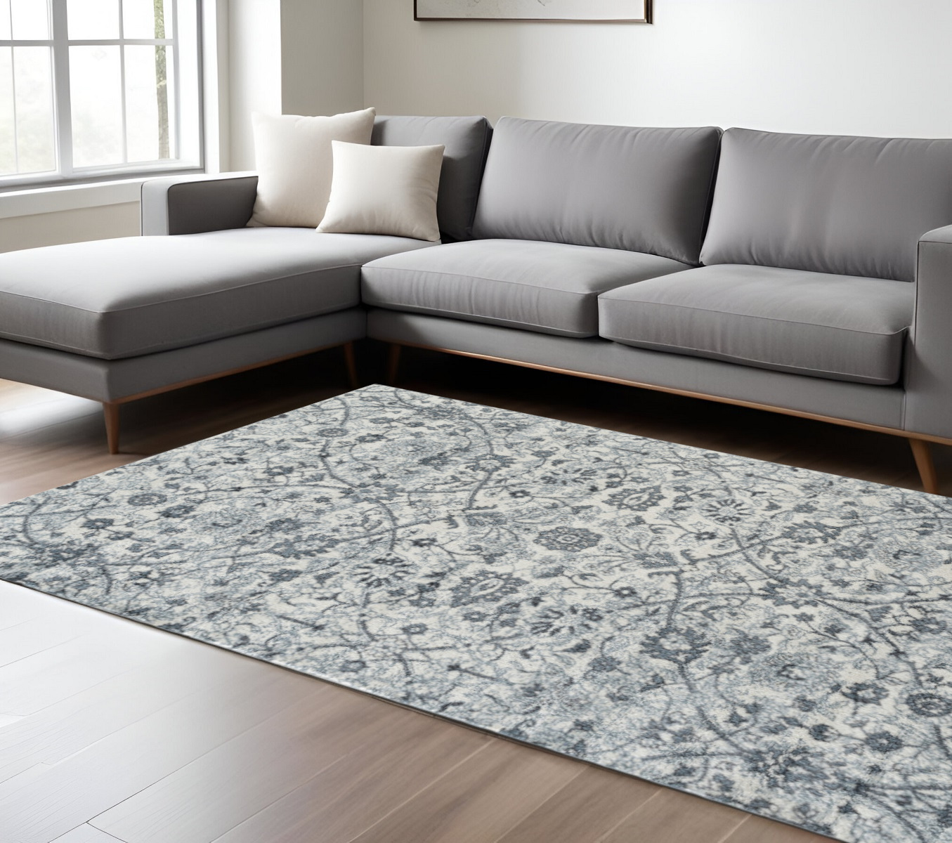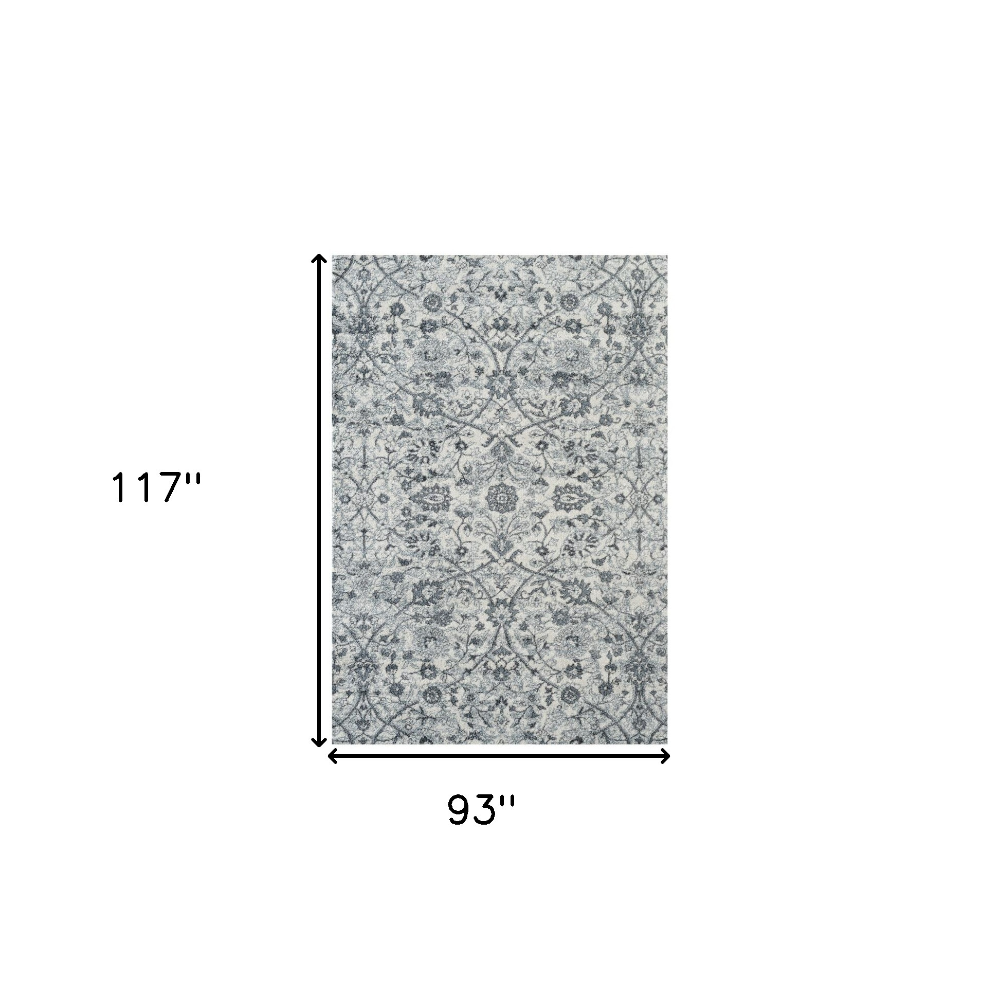 Set an inviting tone in your space with this 8-foot x 10-foot charcoal and ivory floral area rug. Ideal for spaces with kids and pets, this rug is stain resistant to help repel dirt and spilled liquids. Built to last, this rug crafted from polypropylene fibers is known for its durability and long lasting appeal. Rugs are a great way to showcase your style, hide imperfections, warm your home and reduce noise. This larger sized, transitional styled rug is ready to create a focal point or statement piece in your room. 93.00-inch h x 117.00-inch w x 0.38-inch d.