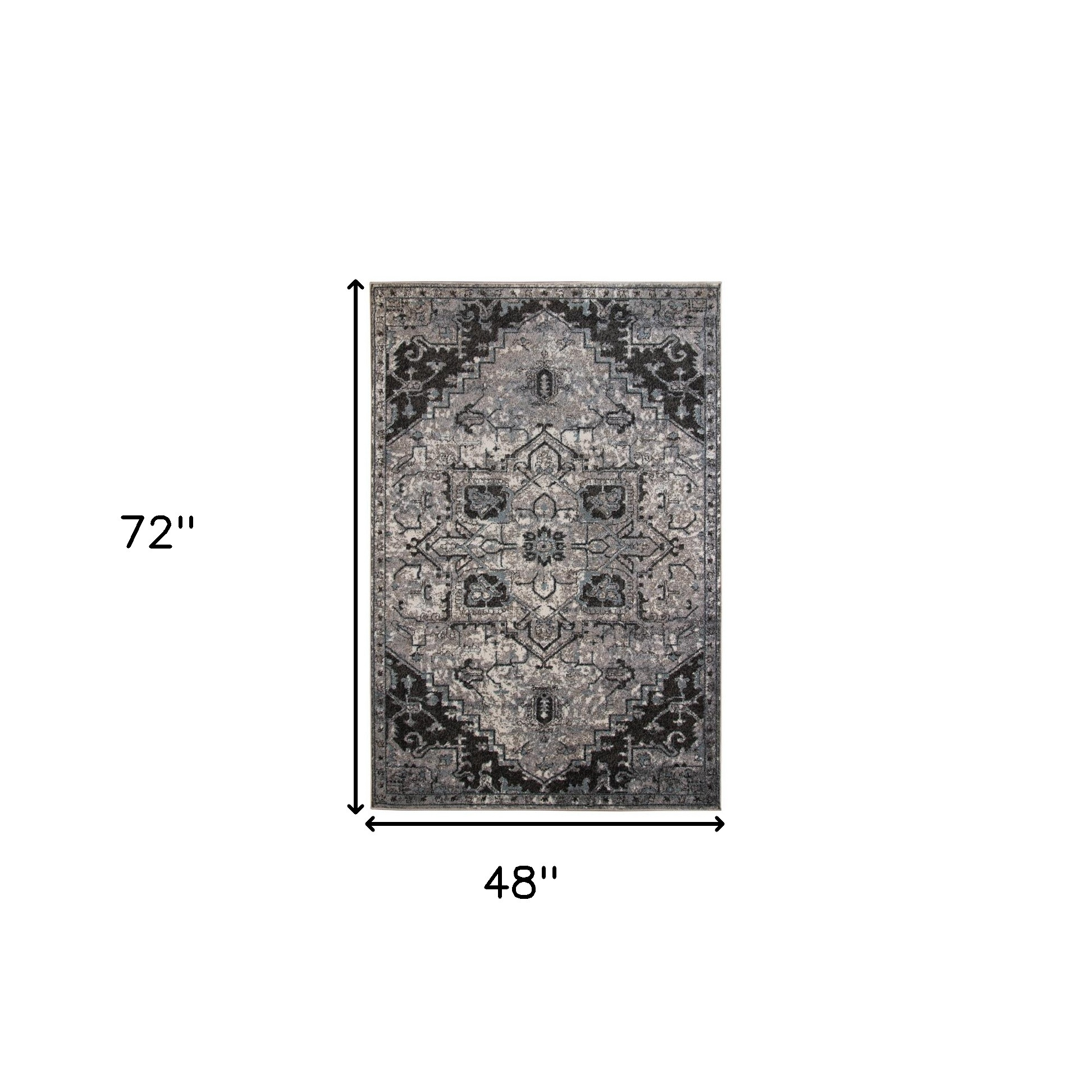 This 4-foot x 6-foot black and gray medallion area rug, is a great way to add warmth to a room. Ideal for spaces with kids and pets, this rug is stain resistant to help repel dirt and spilled liquids. Built to last, this rug crafted from polypropylene fibers is known for its durability and long lasting appeal. Rugs are a great way to showcase your style, hide imperfections, warm your home and reduce noise. This smaller sized, contemporary styled rug is just what you need for your walkway, bedside, in front of door, cabinet, refrigerator, or chair. 48.00-inch h x 72.00-inch w x 0.38-inch d.