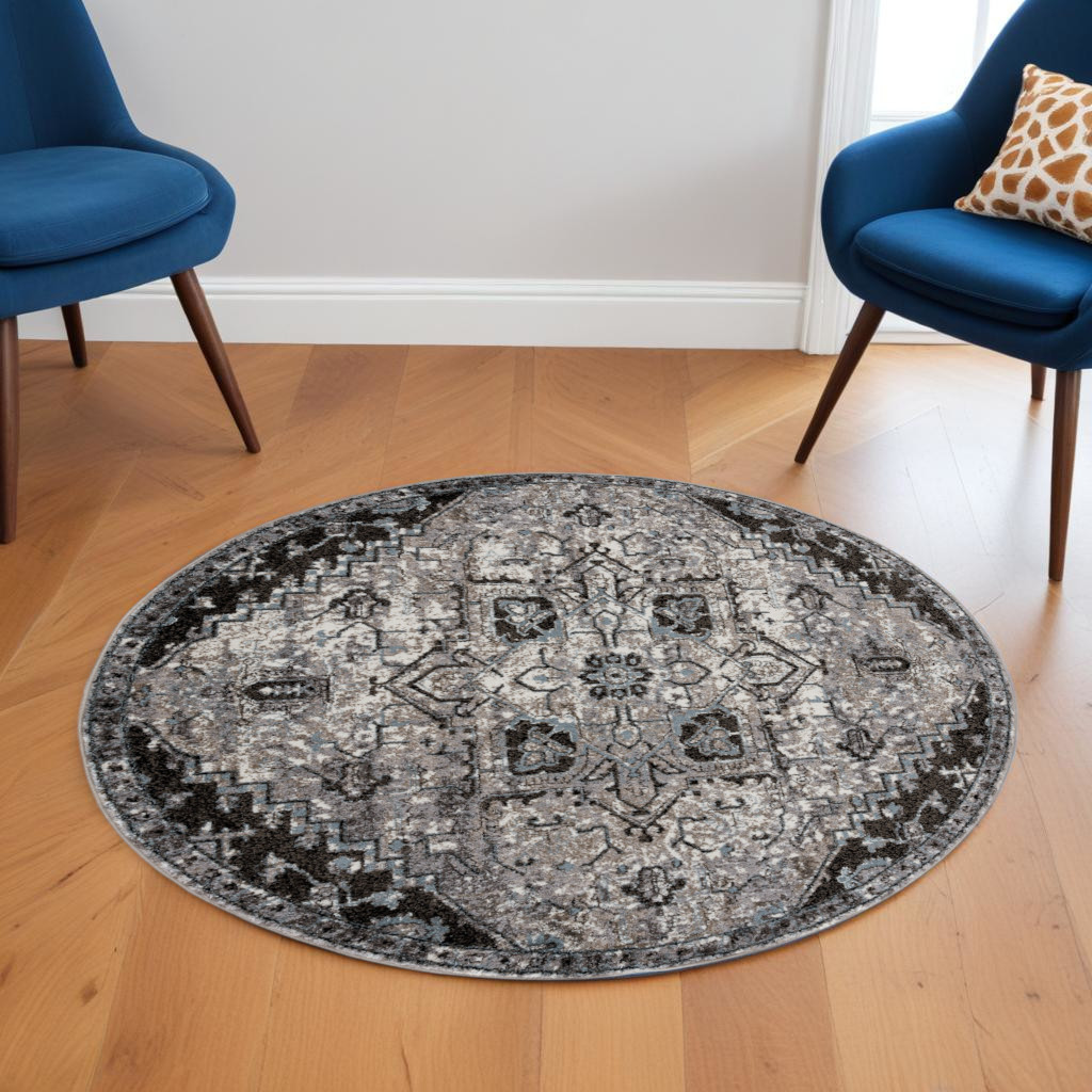 black gray medallion round rug, gray medallion round rug, medallion round rug, black gray medallion round, black gray medallion |