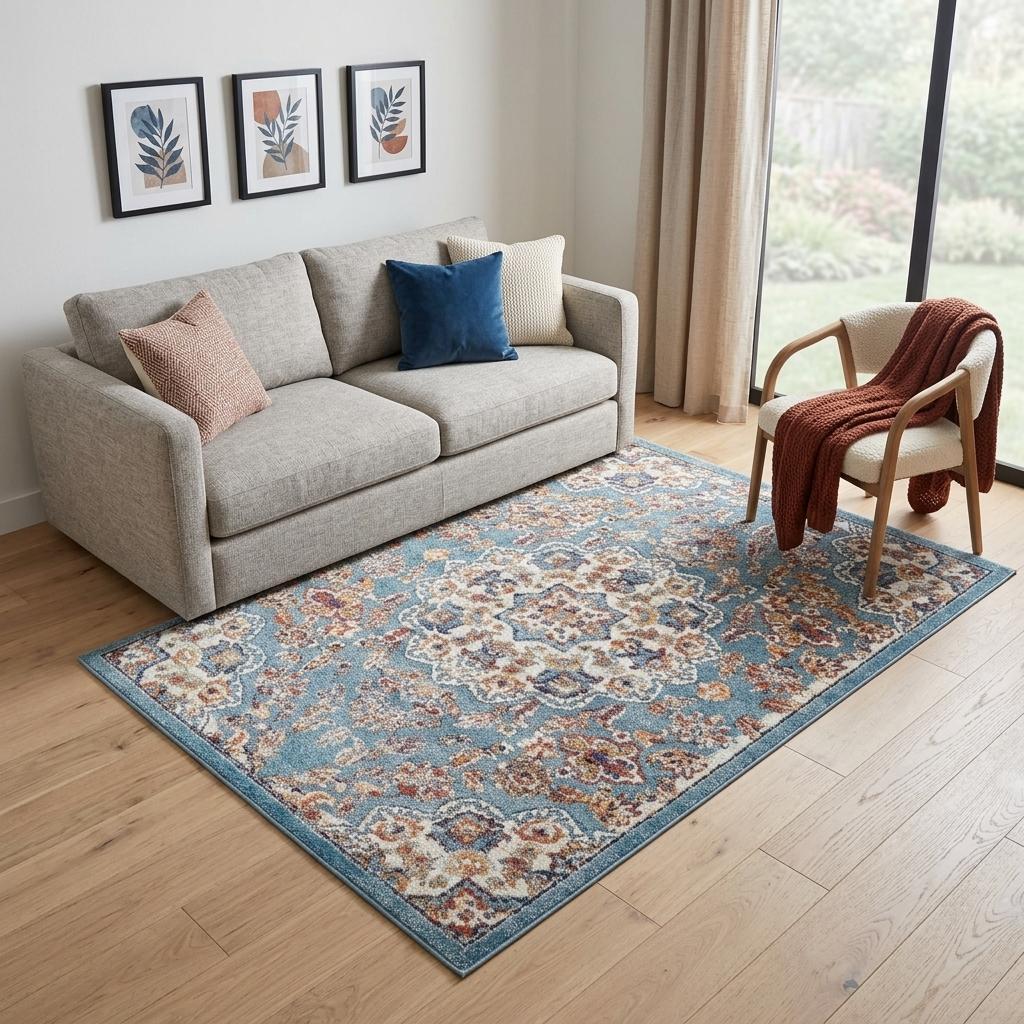 loom area rug, medallion power loom area rug, power loom area rug, power loom area, ivory blue orange |