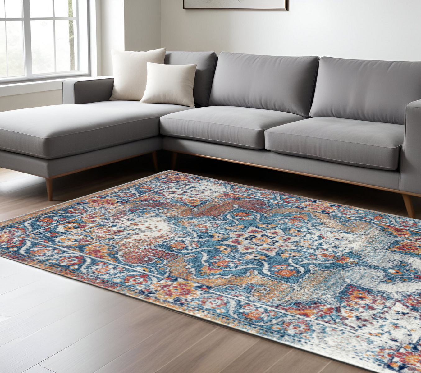 blue orange medallion area rug, orange medallion area rug, medallion area rug, ivory blue orange medallion area, 9' X 12' ivory blue |