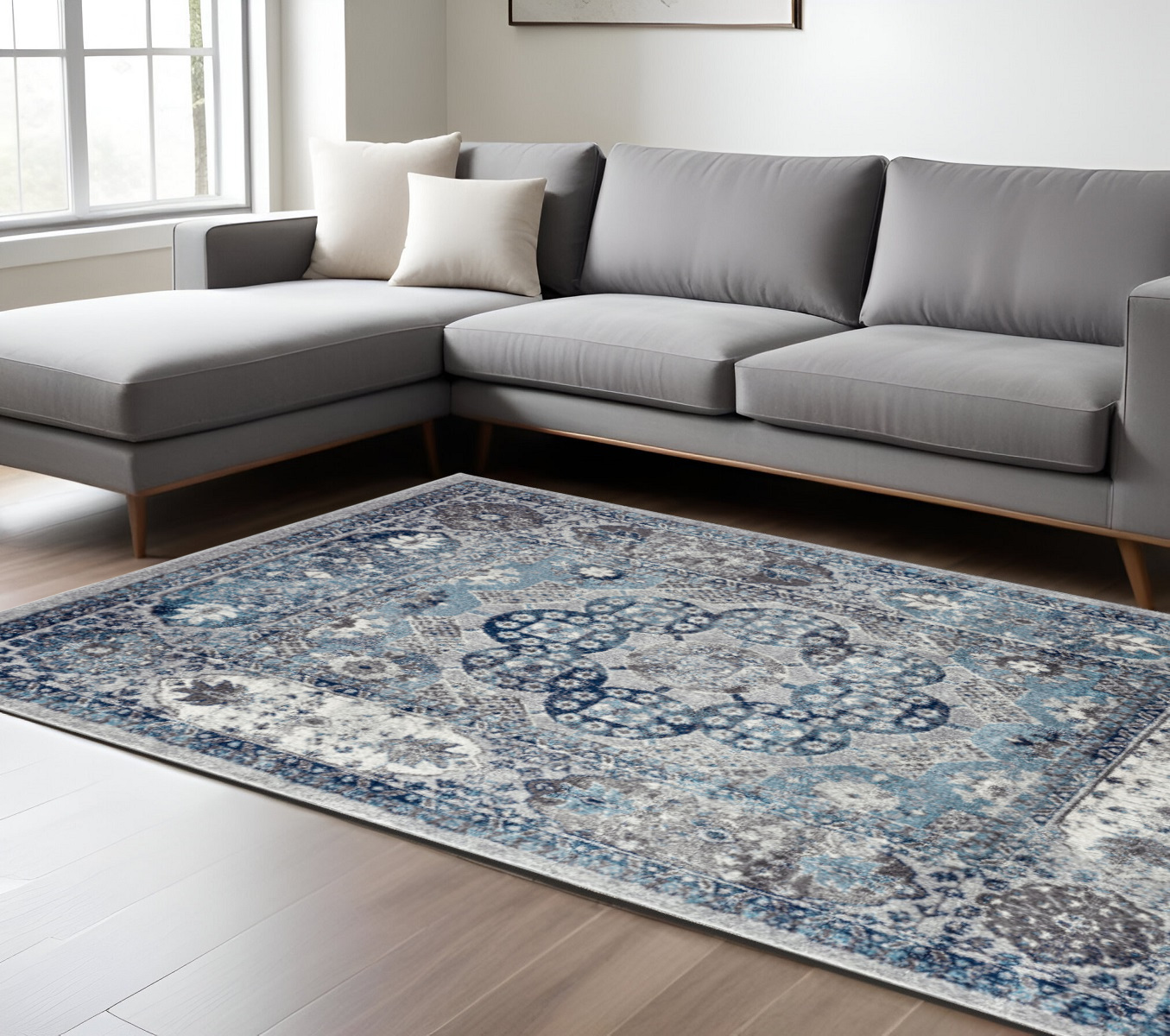 blue gray medallion area rug, gray medallion area rug, medallion area rug, ivory blue gray medallion area, 8' X 10' ivory blue gray |
