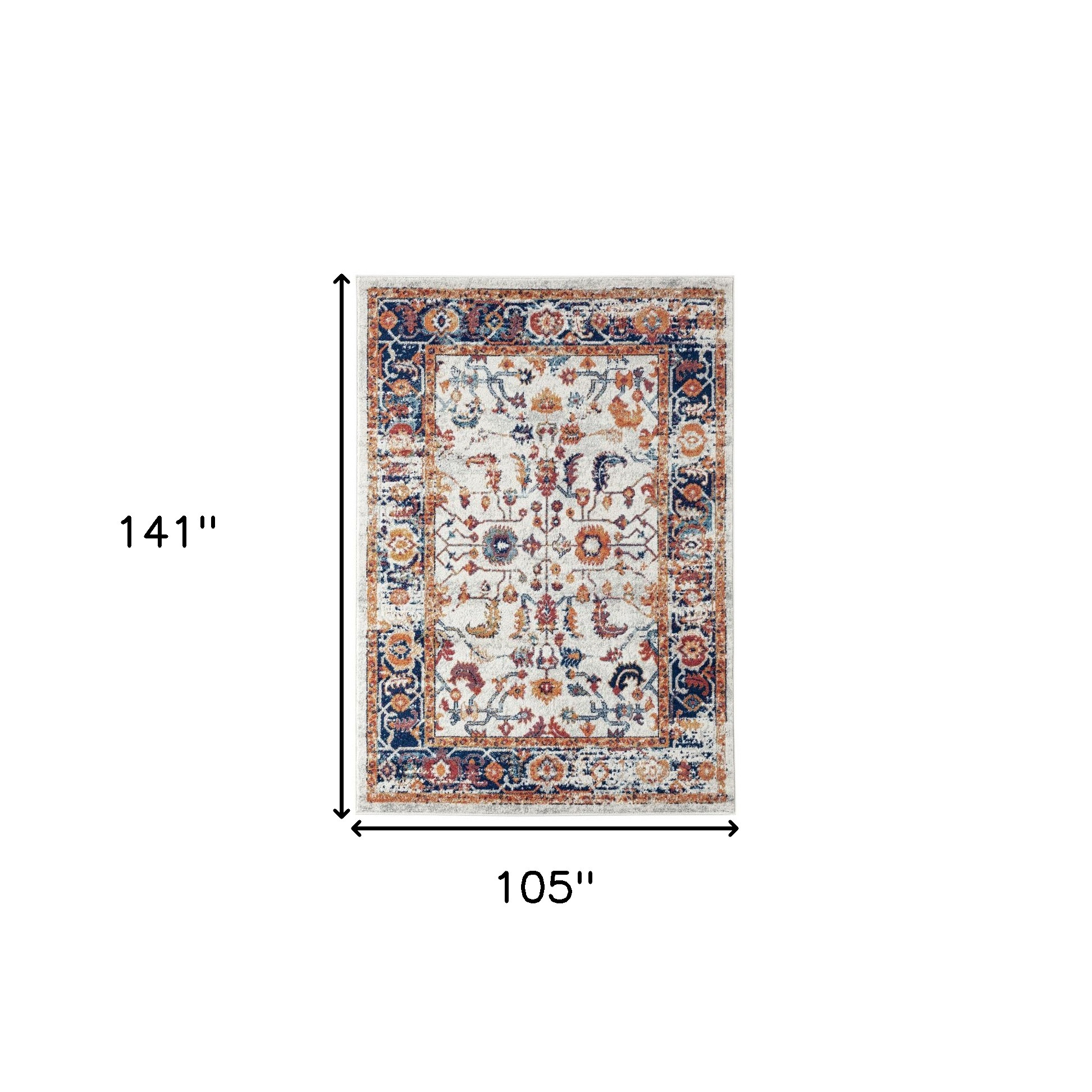 Add some artistry to your room with this 9-foot x 12-foot ivory and orange floral area rug. Ideal for spaces with kids and pets, this rug is stain resistant to help repel dirt and spilled liquids. Built to last, this rug crafted from polypropylene fibers is known for its durability and long lasting appeal. Rugs are a great way to showcase your style, hide imperfections, warm your home and reduce noise. This larger sized, contemporary styled rug is ready to create a focal point or statement piece in your room. 105.00-inch h x 141.00-inch w x 0.38-inch d.