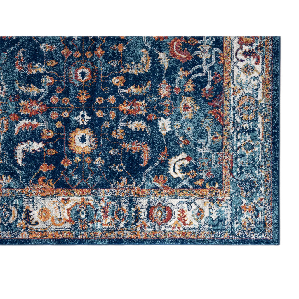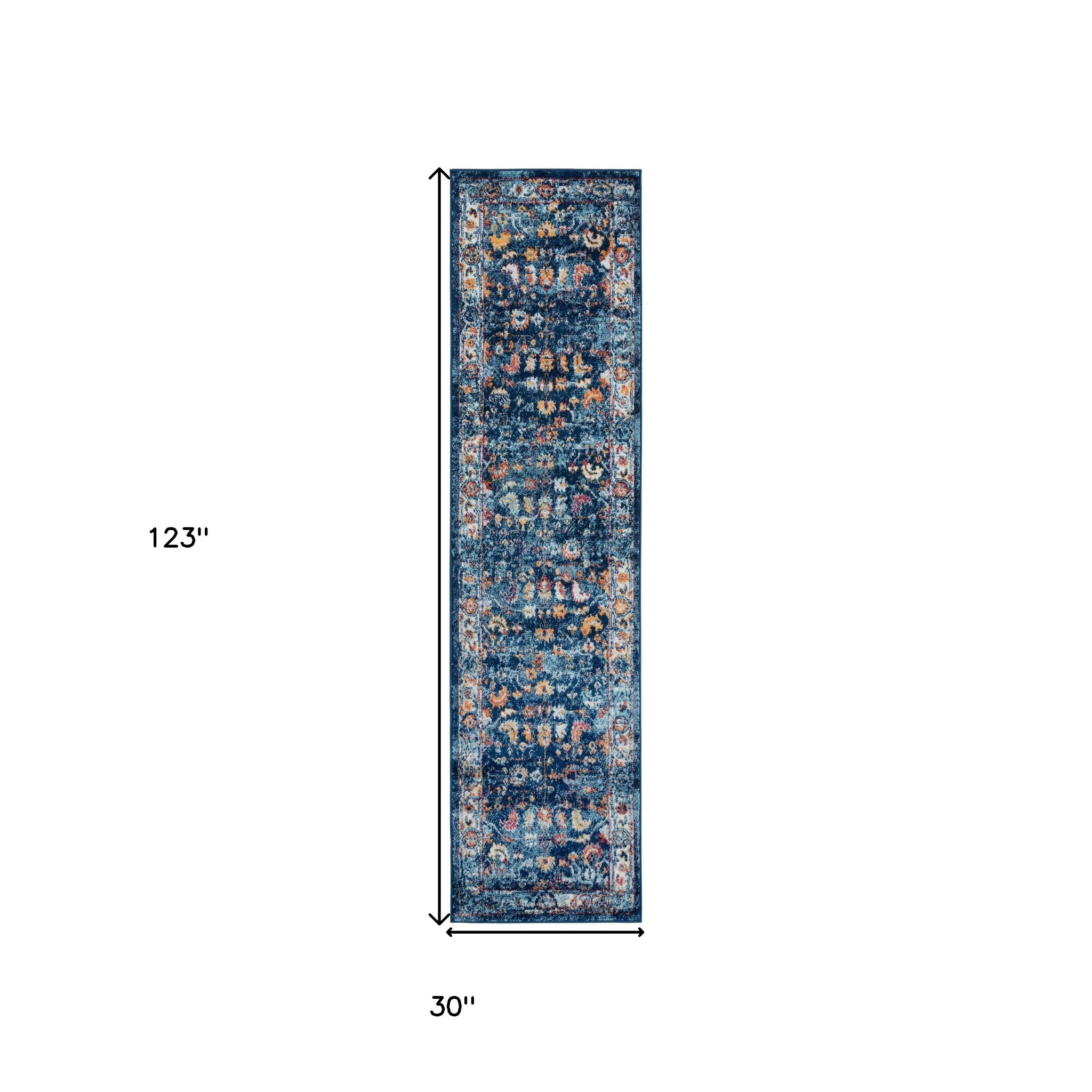 This 10-foot blue rust and orange oriental power loom runner rug, is a great way to add warmth to a room. This runner shaped rug features a oriental design that will add a functional and decorative accent to your space. Ideal for spaces with kids and pets, this rug is stain resistant to help repel dirt and spilled liquids. This smaller sized rug is just what you need for your walkway, or in front of door, cabinet, refrigerator, or chair. 30-inch h x 123-inch w x 0.38-inch d