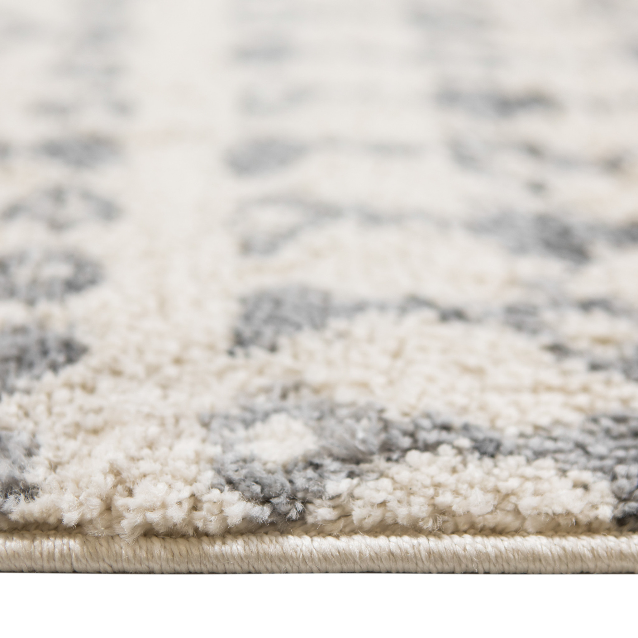 This 8-foot x 12-foot gray and ivory geometric shag area rug, is a great way to add warmth to a room. This rectangle shaped rug features a geometric design in gray and ivory to give it visual interest. A classic shape marries with good looking design for your space ideal for spaces with kids and pets, this rug is stain resistant to help repel stains and spilled liquids. The retro shag construction of this luxurious rug will provide a soft and comfortable barrier to color tile and hardwood floors. Area rugs help to give warmth and sense of home to your space. 99-inch H x 138-inch W x 1.8-inch D