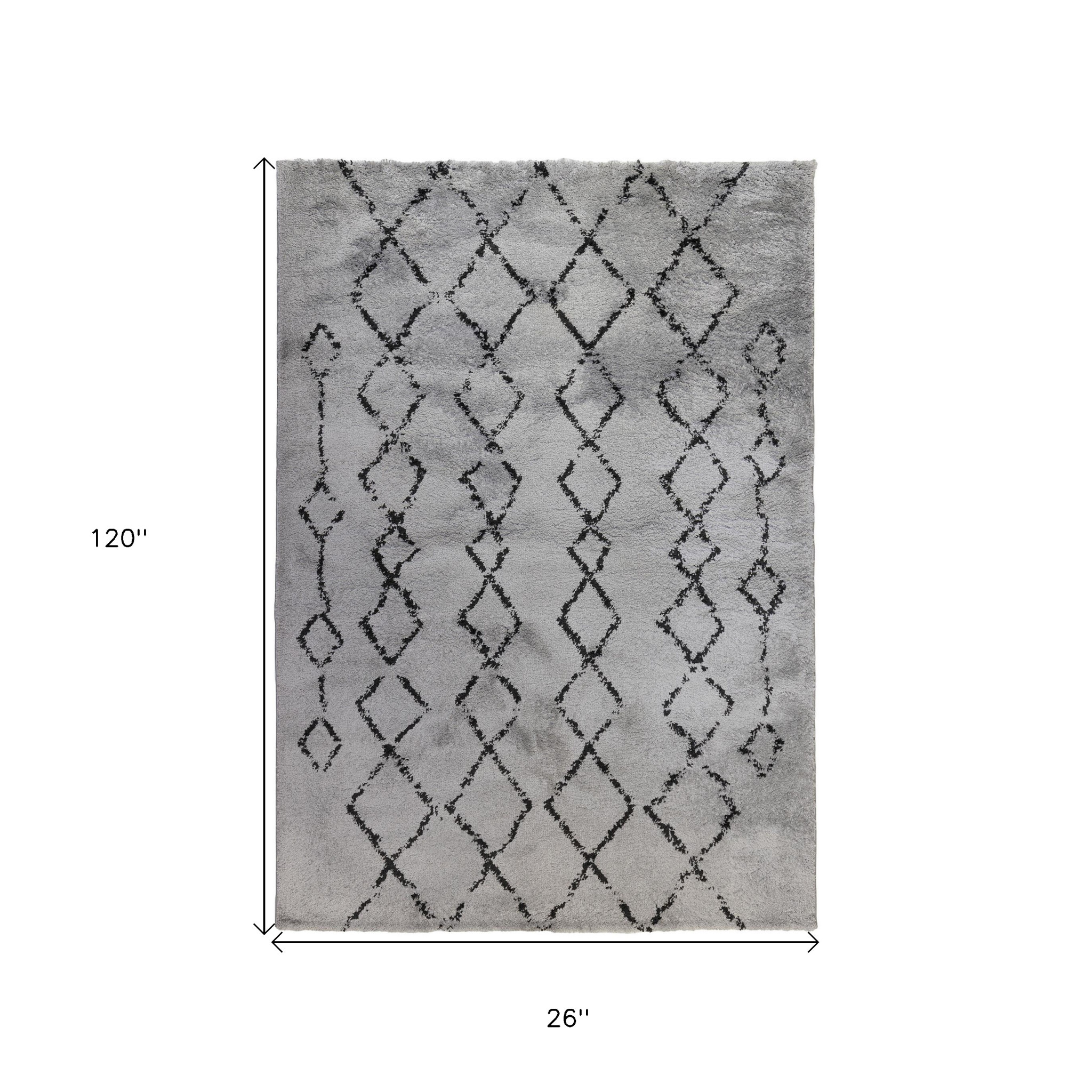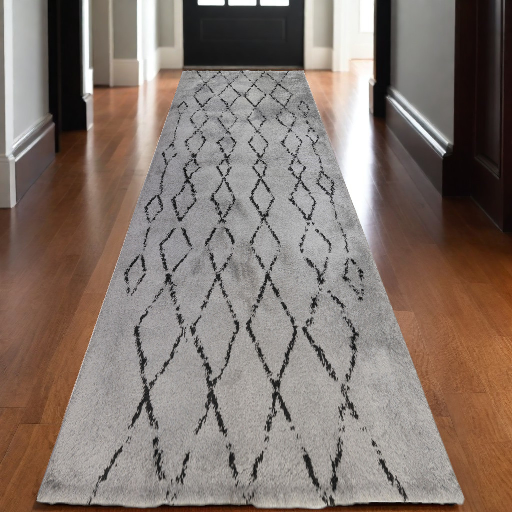 black geometric shag runner rug, geometric shag runner rug, shag runner rug, gray black geometric shag runner, 10' gray black geometric shag |