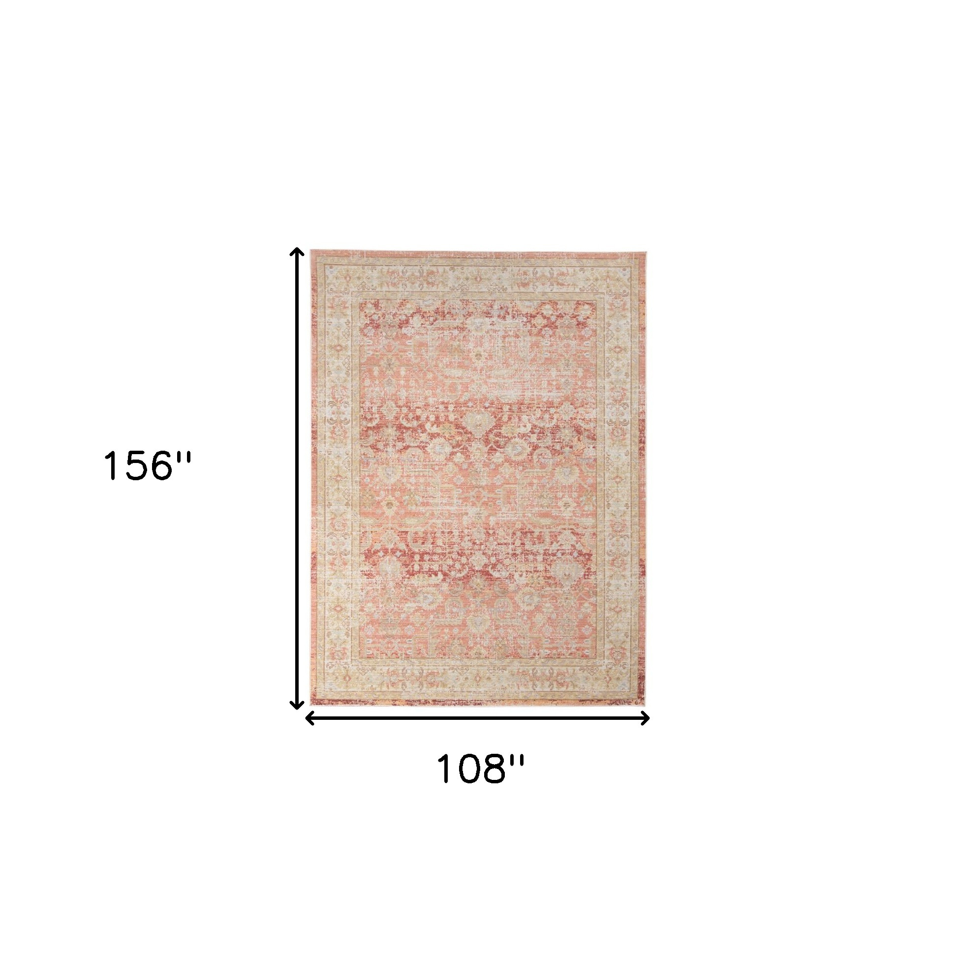 Set an inviting tone in your space with this 9-foot x 13-foot salmon and tan floral area rug. Built to last, this rug crafted from polyester fibers is known for its durability and long lasting appeal. Rugs are a great way to showcase your style, hide imperfections, warm your home and reduce noise. This larger sized, traditional styled rug is ready to create a focal point or statement piece in your room. 108-inch h x 156-inch w x 0.08-inch d.
