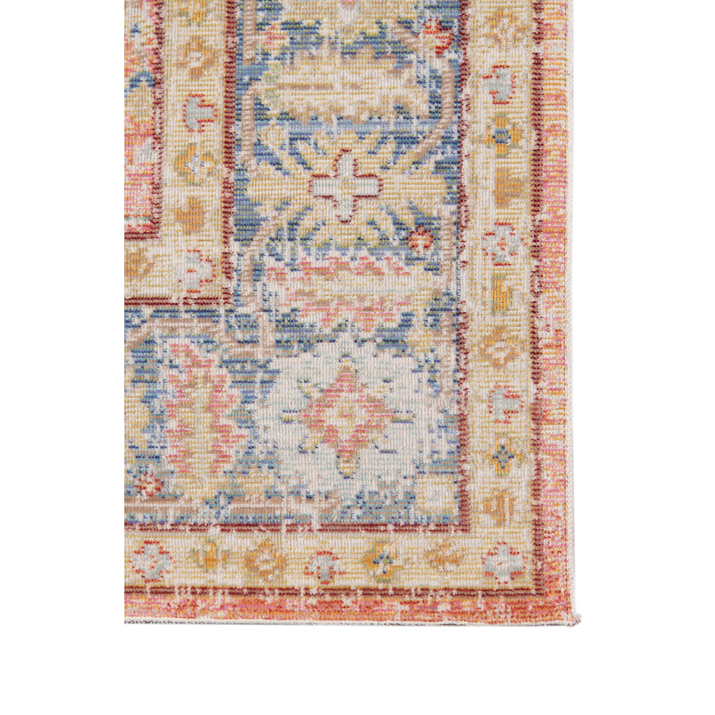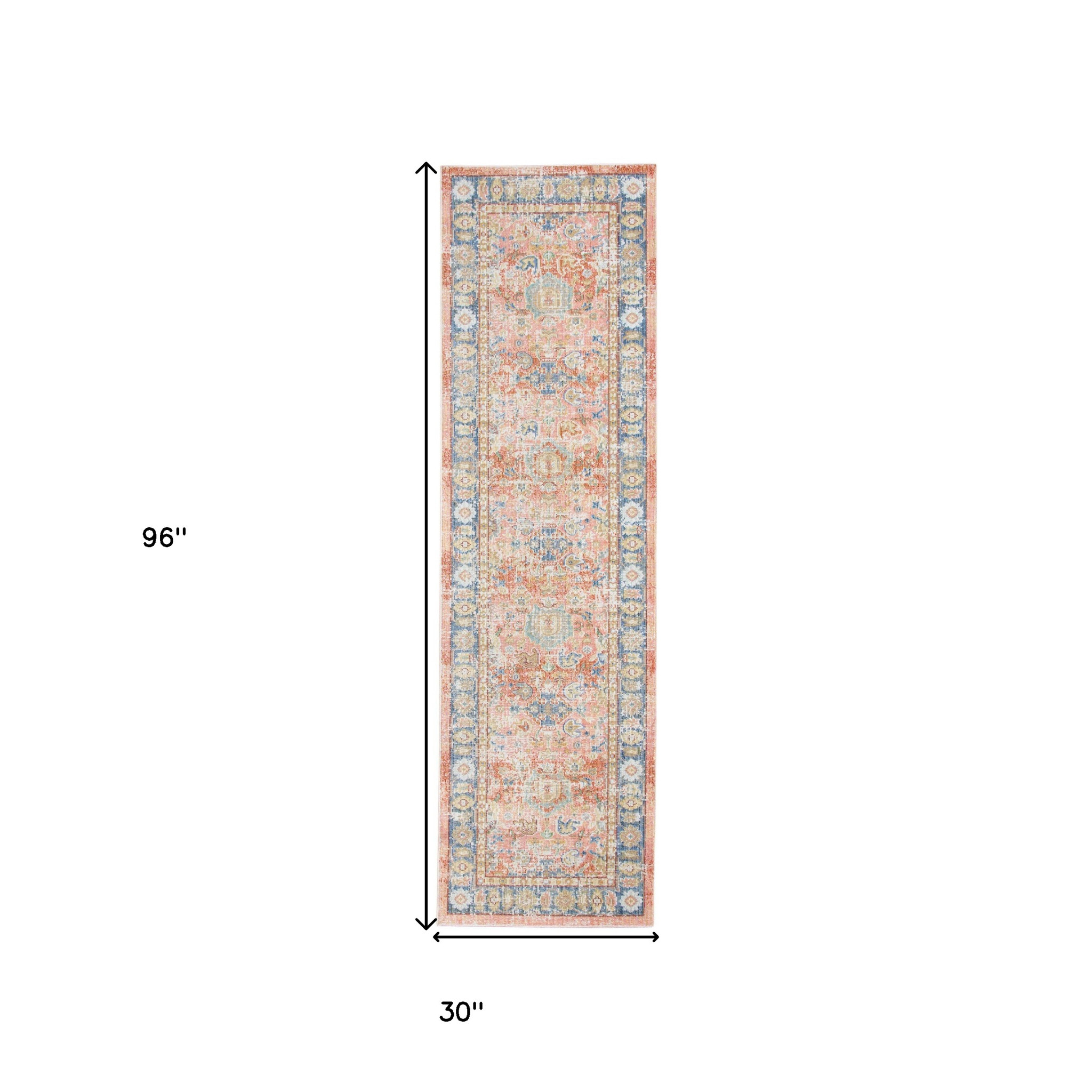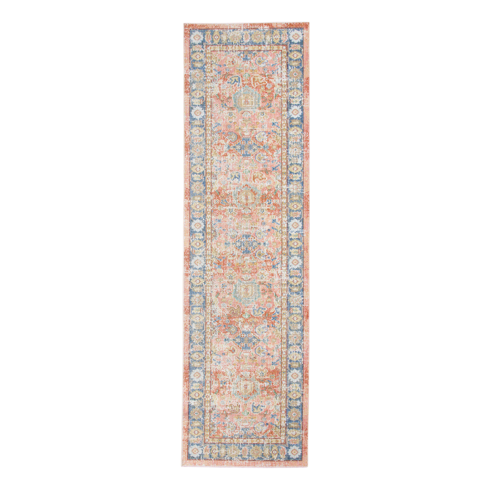 This 8-foot coral and blue oriental runner rug, is a great way to add warmth to a room. Built to last, this rug crafted from polyester fibers is known for its durability and long lasting appeal. Rugs are a great way to showcase your style, hide imperfections, warm your home and reduce noise. This traditional style runner makes a great accent for the hallway, in front of cabinets, in the laundry room, or any other space you need a narrow and long rug. 30.00-inch h x 96.00-inch w x 0.08-inch d.