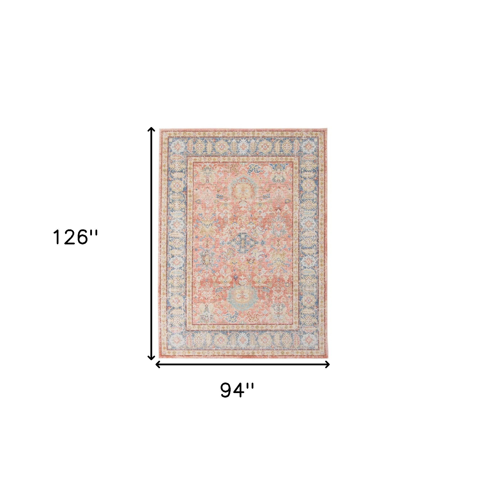 Set an inviting tone in your space with this 8-foot x 10-foot coral and blue oriental area rug. Built to last, this rug crafted from polyester fibers is known for its durability and long lasting appeal. Rugs are a great way to showcase your style, hide imperfections, warm your home and reduce noise. This larger sized, traditional styled rug is ready to create a focal point or statement piece in your room. 94.00-inch h x 126.00-inch w x 0.08-inch d.