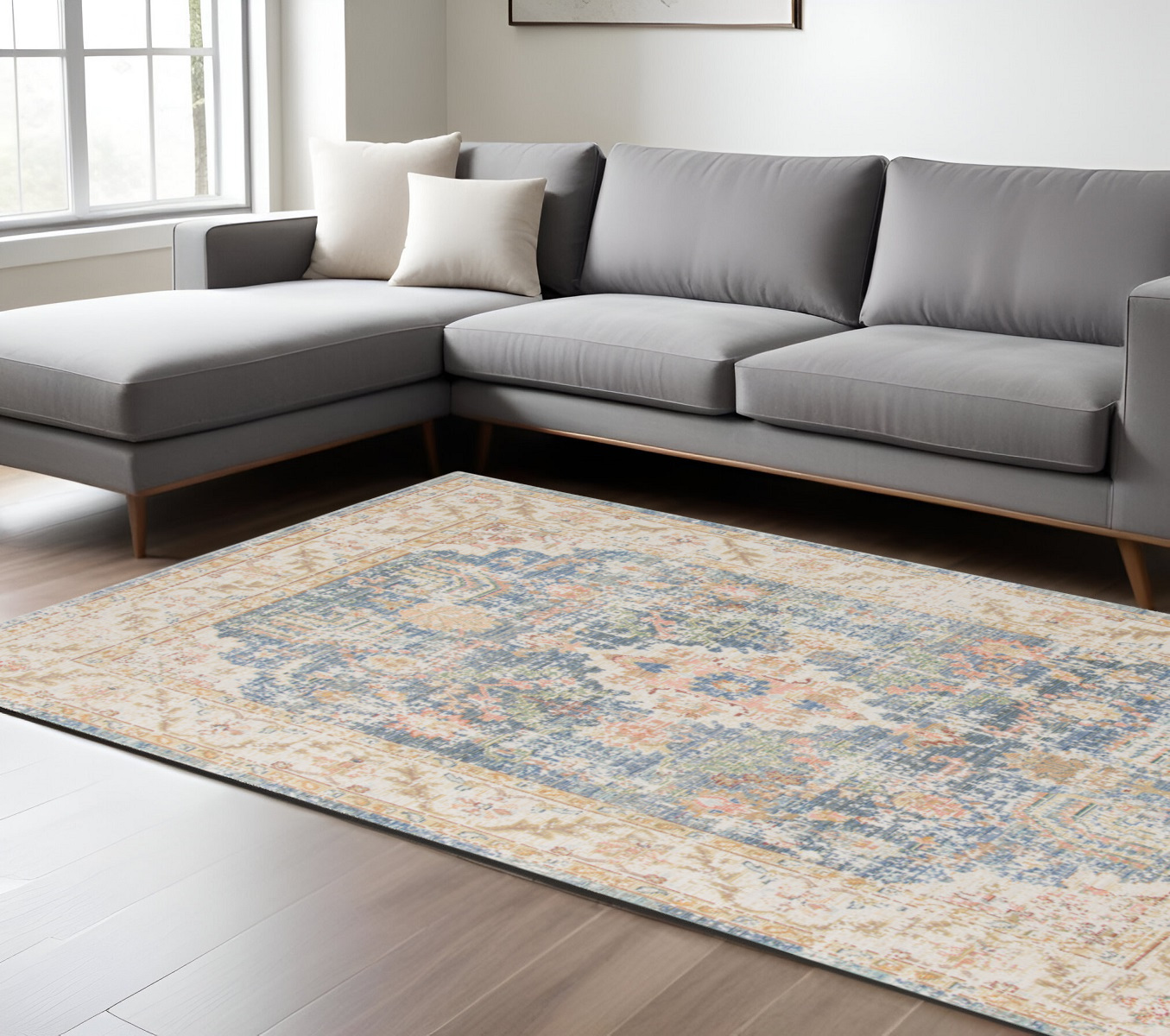 Set an inviting tone in your space with this 9-foot x 13-foot coral and blue floral area rug. Built to last, this rug crafted from polyester fibers is known for its durability and long lasting appeal. Rugs are a great way to showcase your style, hide imperfections, warm your home and reduce noise. This larger sized, traditional styled rug is ready to create a focal point or statement piece in your room. 108.00-inch h x 156.00-inch w x 0.08-inch d.