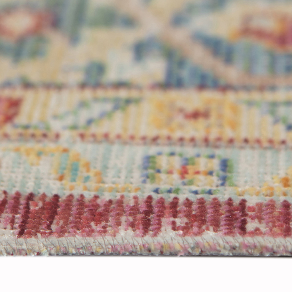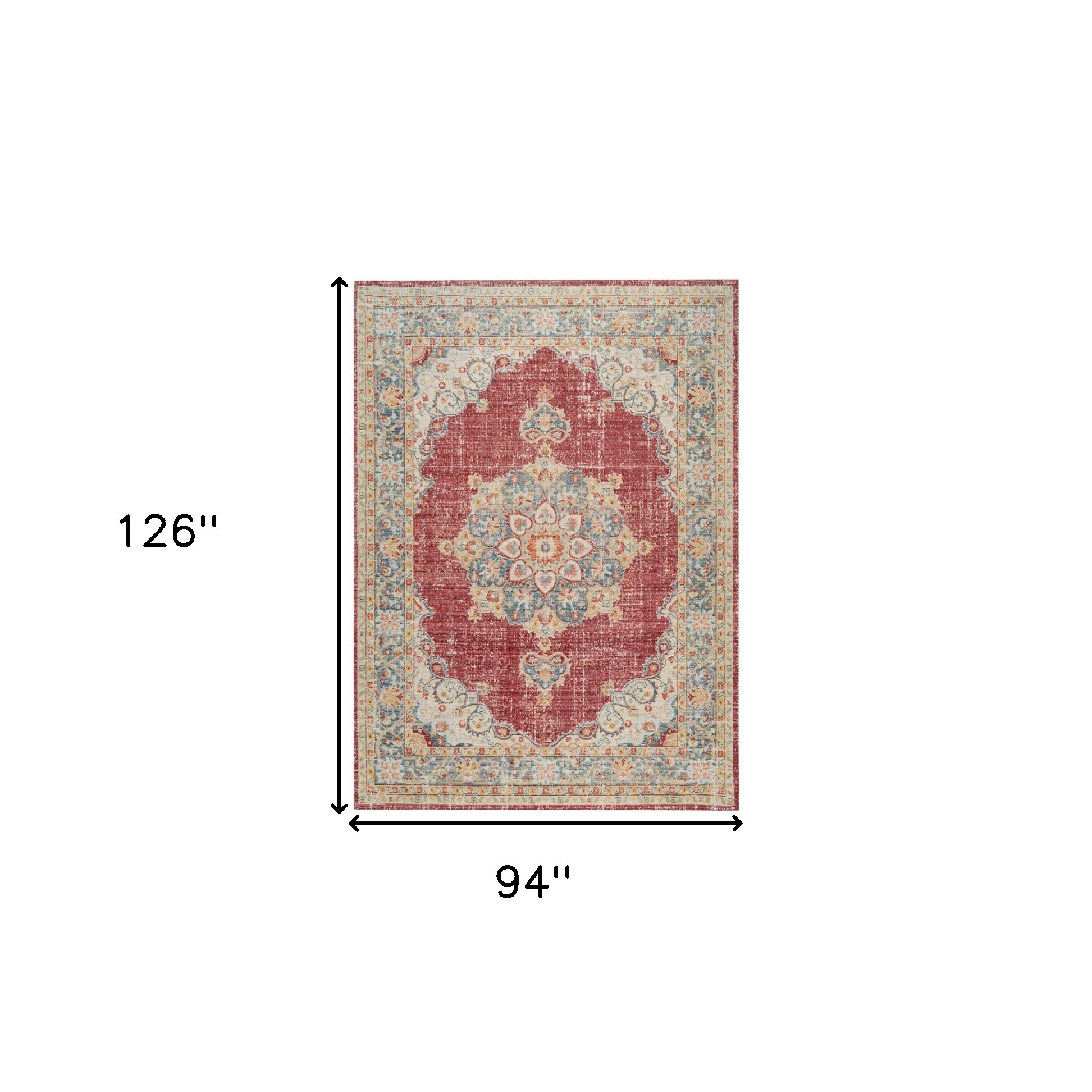 Set an inviting tone in your space with this 8-foot x 10-foot ivory red and blue medallion area rug. Built to last, this rug crafted from polyester fibers is known for its durability and long lasting appeal. Rugs are a great way to showcase your style, hide imperfections, warm your home and reduce noise. This larger sized, traditional styled rug is ready to create a focal point or statement piece in your room. 94.00-inch h x 126.00-inch w x 0.08-inch d.