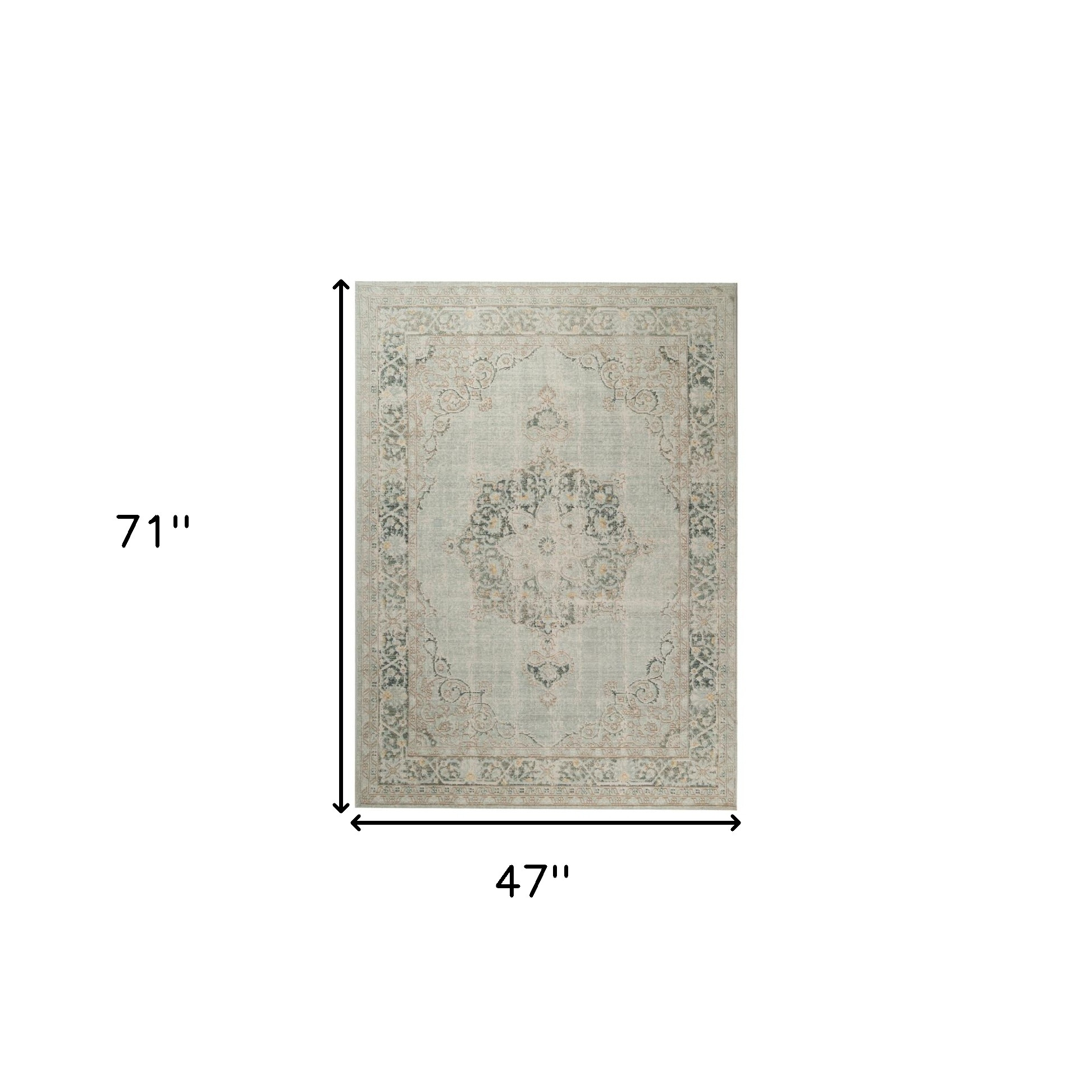 Add some artistry to your room with this 4-foot x 6-foot tan and light green medallion area rug. Built to last, this rug crafted from polyester fibers is known for its durability and long lasting appeal. Rugs are a great way to showcase your style, hide imperfections, warm your home and reduce noise. This smaller sized, traditional styled rug is just what you need for your walkway, bedside, in front of door, cabinet, refrigerator, or chair. 47.00-inch h x 71.00-inch w x 0.08-inch d.