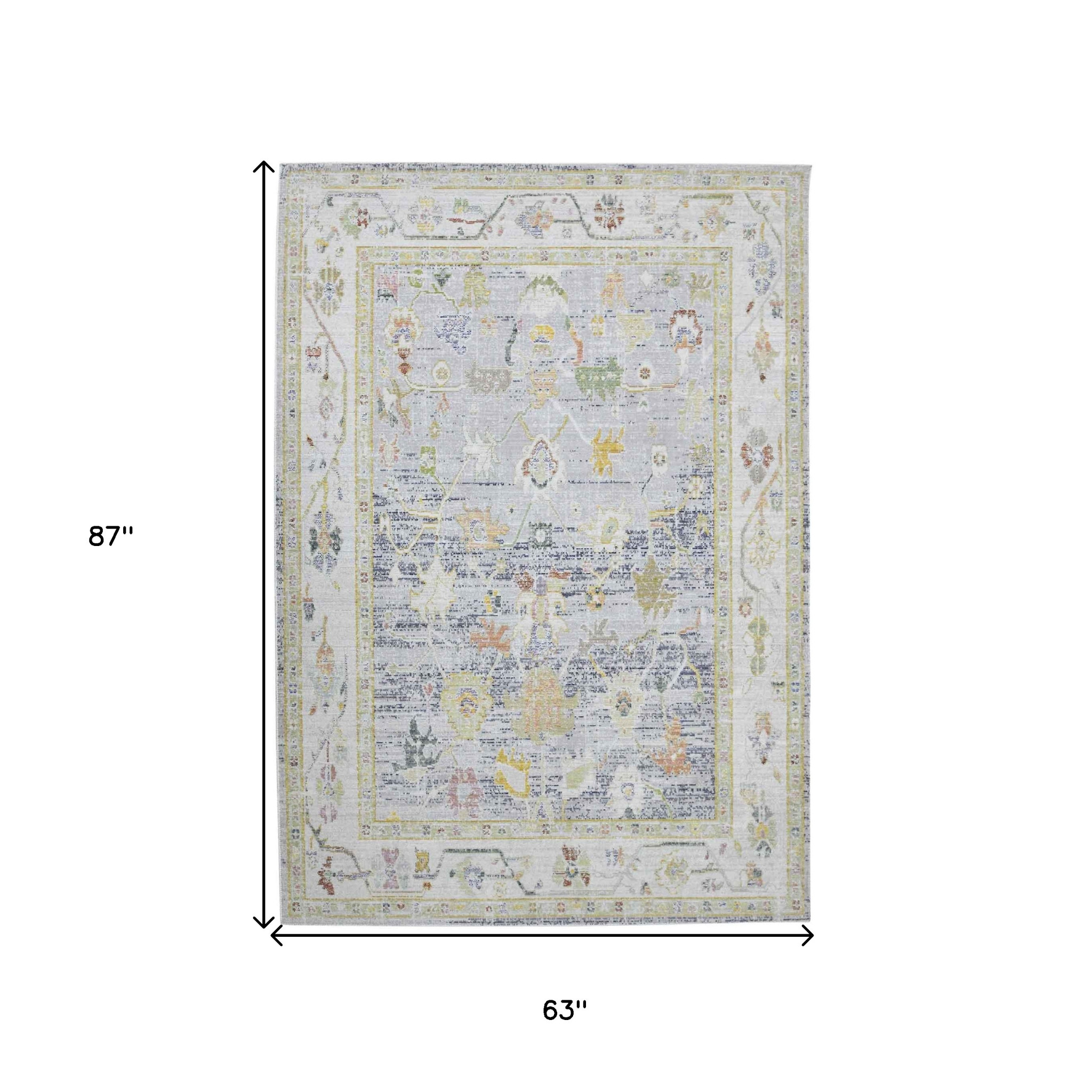 Add some artistry to your room with this 5-foot x 8-foot ivory blue and green floral area rug. Built to last, this rug crafted from polyester fibers is known for its durability and long lasting appeal. Rugs are a great way to showcase your style, hide imperfections, warm your home and reduce noise. This larger sized, traditional styled rug is ready to create a focal point or statement piece in your room. 63.00-inch h x 87.00-inch w x 0.08-inch d.