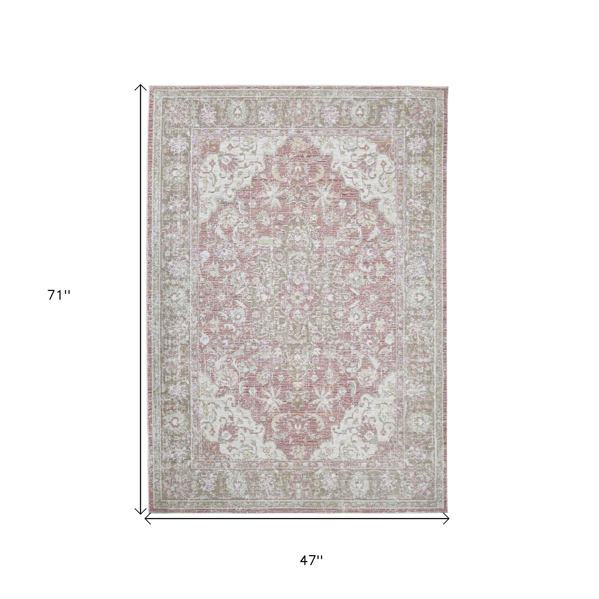 Add some artistry to your room with this 4-foot x 6-foot pink and gray medallion area rug. Built to last, this rug crafted from polyester fibers is known for its durability and long lasting appeal. Rugs are a great way to showcase your style, hide imperfections, warm your home and reduce noise. This smaller sized, traditional styled rug is just what you need for your walkway, bedside, in front of door, cabinet, refrigerator, or chair. 47.00-inch h x 71.00-inch w x 0.08-inch d.