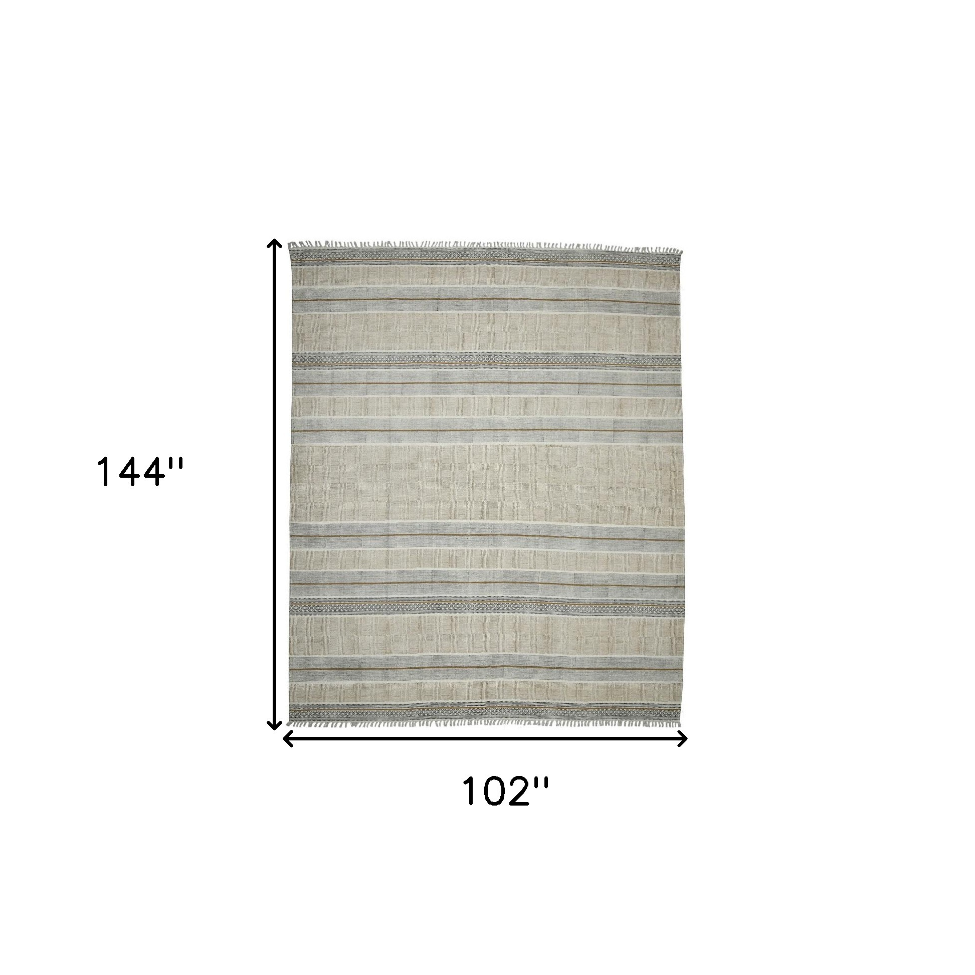 Set an inviting tone in your space with this 9-foot x 12-foot gray and brown striped flatweave handmade distressed area rug with fringe. Rugs are a great way to showcase your style, hide imperfections, warm your home and reduce noise. Tassel ends bring a timeless and fashionable look to your interior. This larger sized, contemporary styled rug is ready to create a focal point or statement piece in your room. 102.00-inch h x 144.00-inch w x 0.20-inch d.