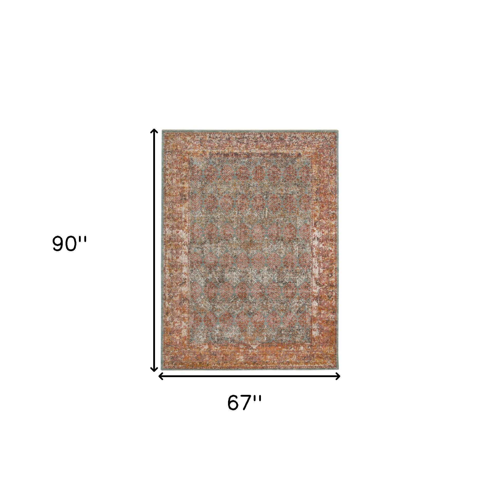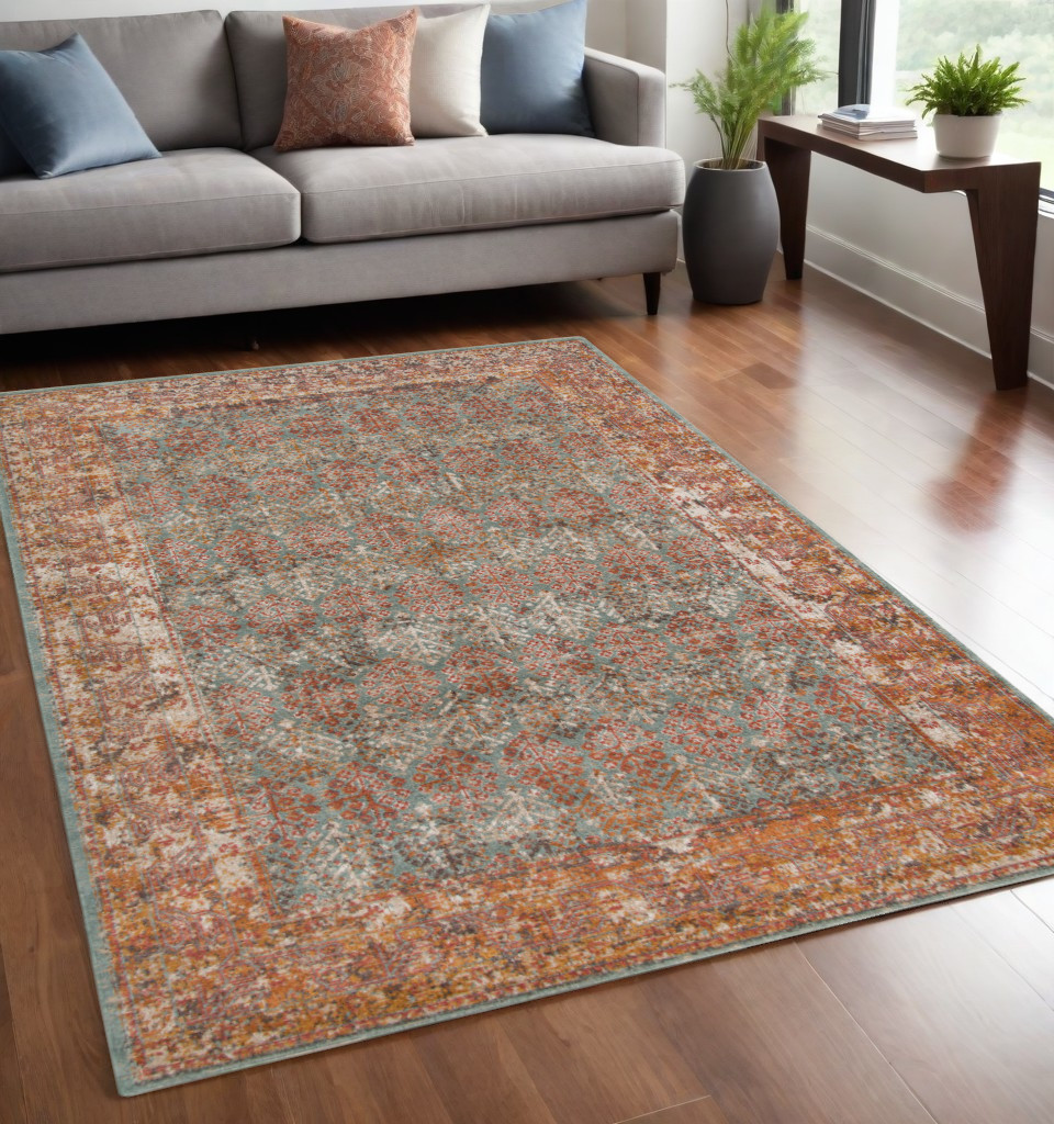 Add some artistry to your room with this 6-foot x 8-foot teal and orange medallion area rug. Ideal for spaces with kids and pets, this rug is stain resistant to help repel dirt and spilled liquids. Built to last, this rug crafted from polypropylene fibers is known for its durability and long lasting appeal. Rugs are a great way to showcase your style, hide imperfections, warm your home and reduce noise. This larger sized, traditional styled rug is ready to create a focal point or statement piece in your room. 67.00-inch h x 90.00-inch w x 0.15-inch d.