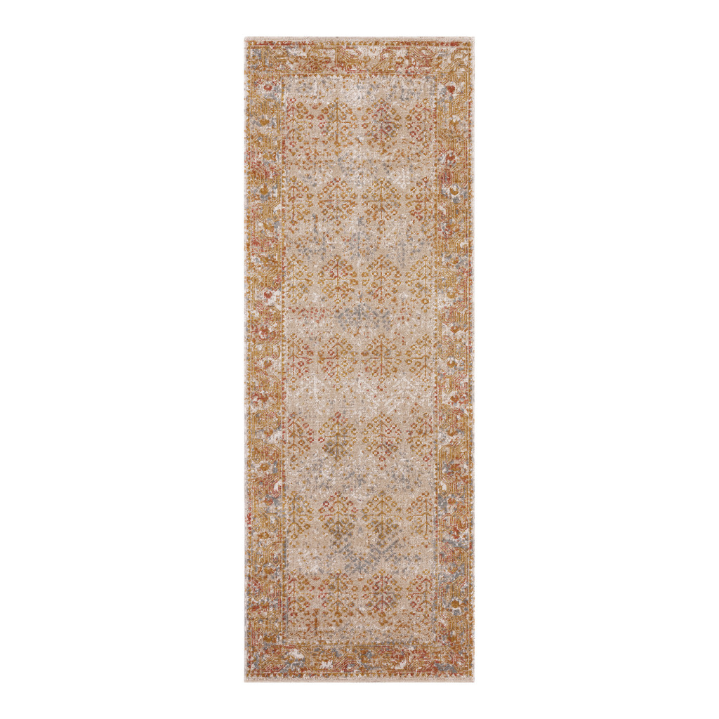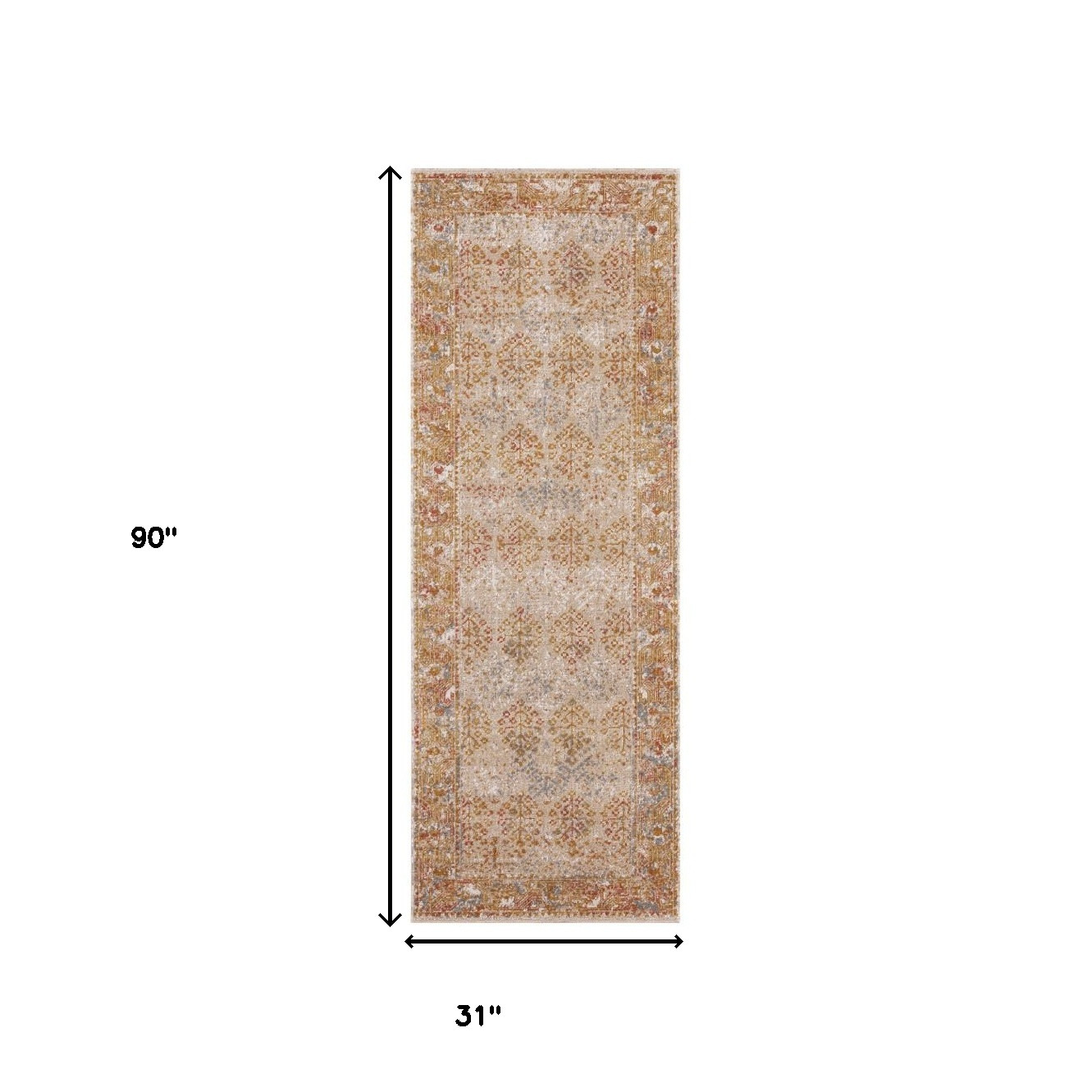 This 7-foot beige orange and teal southwestern runner rug, is a great way to add warmth to a room. Ideal for spaces with kids and pets, this rug is stain resistant to help repel dirt and spilled liquids. Built to last, this rug crafted from polypropylene fibers is known for its durability and long lasting appeal. Rugs are a great way to showcase your style, hide imperfections, warm your home and reduce noise. This traditional style runner makes a great accent for the hallway, in front of cabinets, in the laundry room, or any other space you need a narrow and long rug. 31.00-inch h x 90.00-inch w x 0.15-inch d.