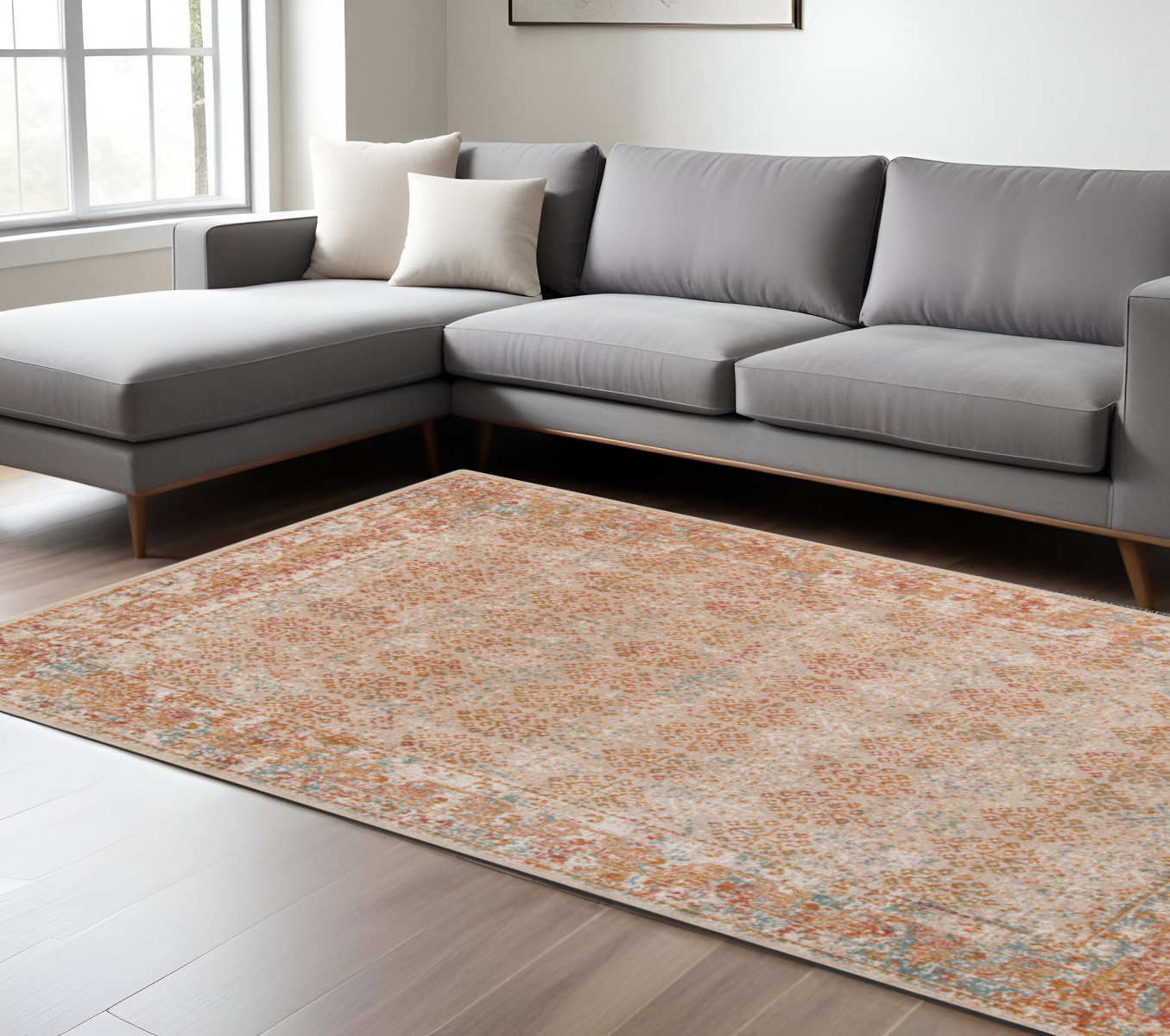 Add great coloration and comfortable texture to your space with this 10-foot x 14-foot beige orange and teal southwestern area rug. Ideal for spaces with kids and pets, this rug is stain resistant to help repel dirt and spilled liquids. Built to last, this rug crafted from polypropylene fibers is known for its durability and long lasting appeal. Rugs are a great way to showcase your style, hide imperfections, warm your home and reduce noise. This larger sized, traditional styled rug is ready to create a focal point or statement piece in your room. 118.00-inch h x 166.00-inch w x 0.15-inch d.