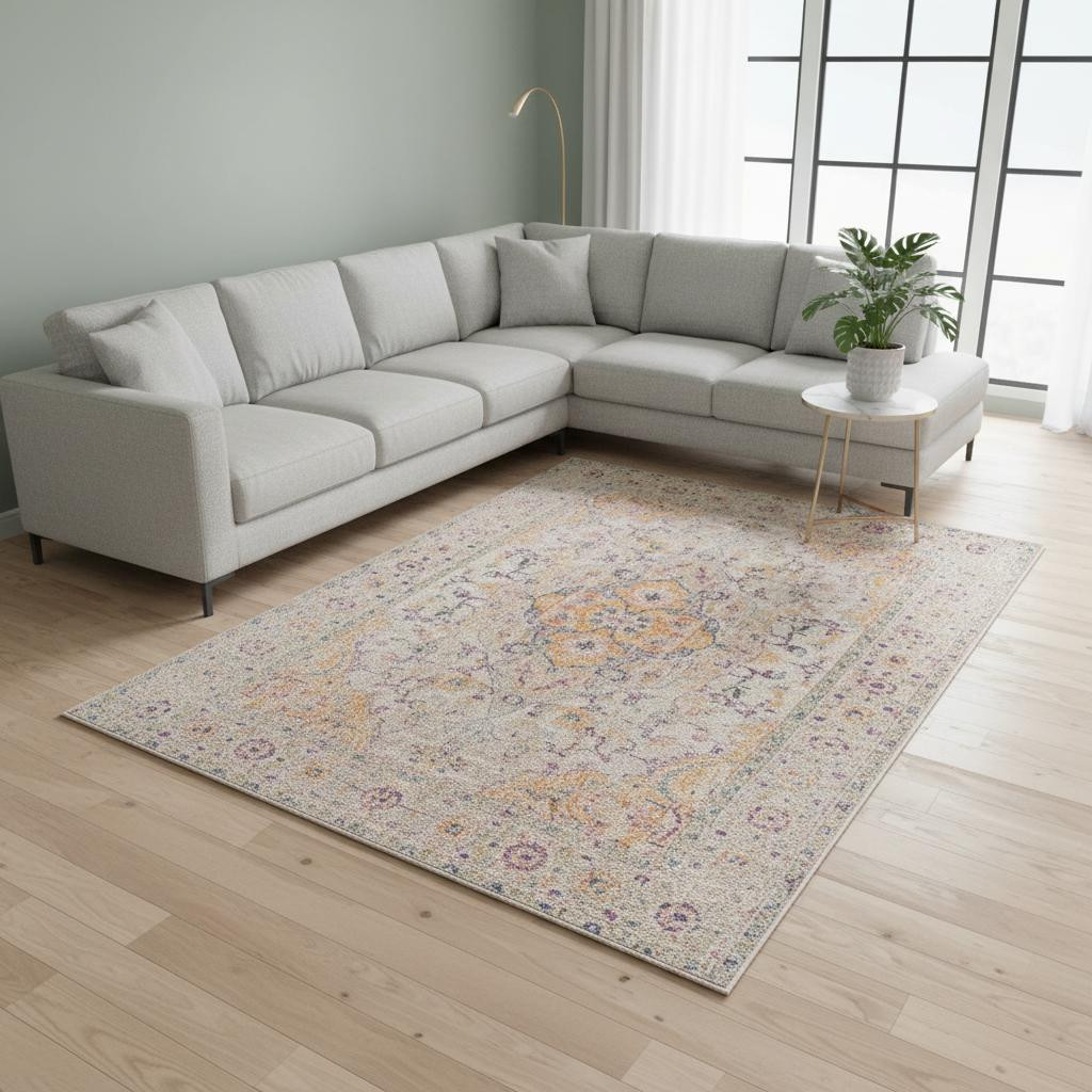 Add great coloration and comfortable texture to your space with this 9-foot x 12-foot ivory and yellow oriental distressed area rug. Ideal for spaces with kids and pets, this rug is stain resistant to help repel dirt and spilled liquids. Built to last, this rug crafted from polypropylene fibers is known for its durability and long lasting appeal. Rugs are a great way to showcase your style, hide imperfections, warm your home and reduce noise. This larger sized, transitional styled rug is ready to create a focal point or statement piece in your room. 107-inch h x 143-inch w x 0.15-inch d.