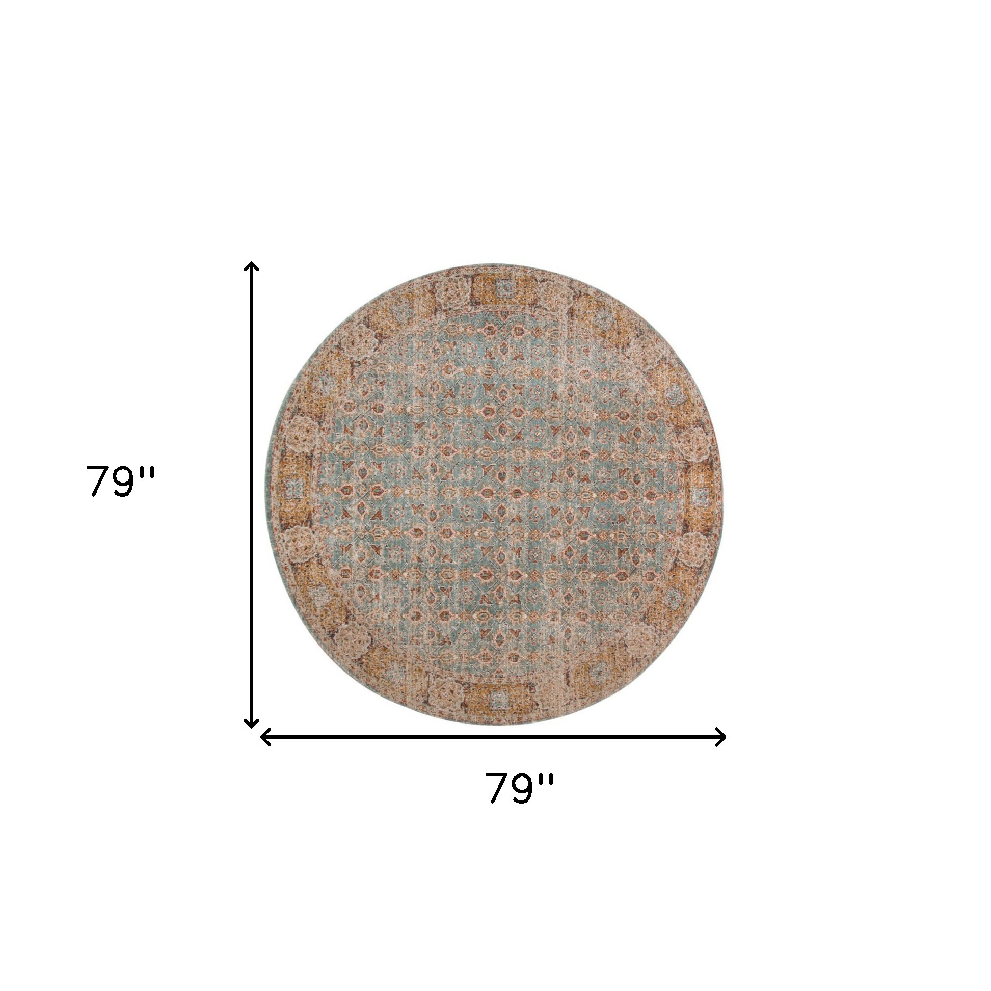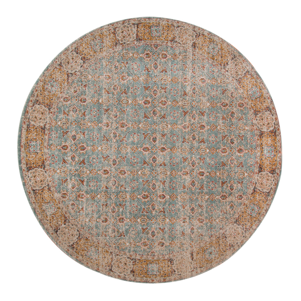 Add great coloration and comfortable texture to your space with this 6-foot teal red and orange oriental distressed round rug. Ideal for spaces with kids and pets, this rug is stain resistant to help repel dirt and spilled liquids. Built to last, this rug crafted from polypropylene fibers is known for its durability and long lasting appeal. Rugs are a great way to showcase your style, hide imperfections, warm your home and reduce noise. This geometric round shaped rug features a oriental pattern in teal, red, and orange that combines a good looking print with a unique and updated shape. The mix of shape, color, and design gives this rug refreshing visual interest. This larger sized, transitional styled rug is ready to create a focal point or statement piece in your room. 79-inch h x 79-inch w x 0.15-inch d.