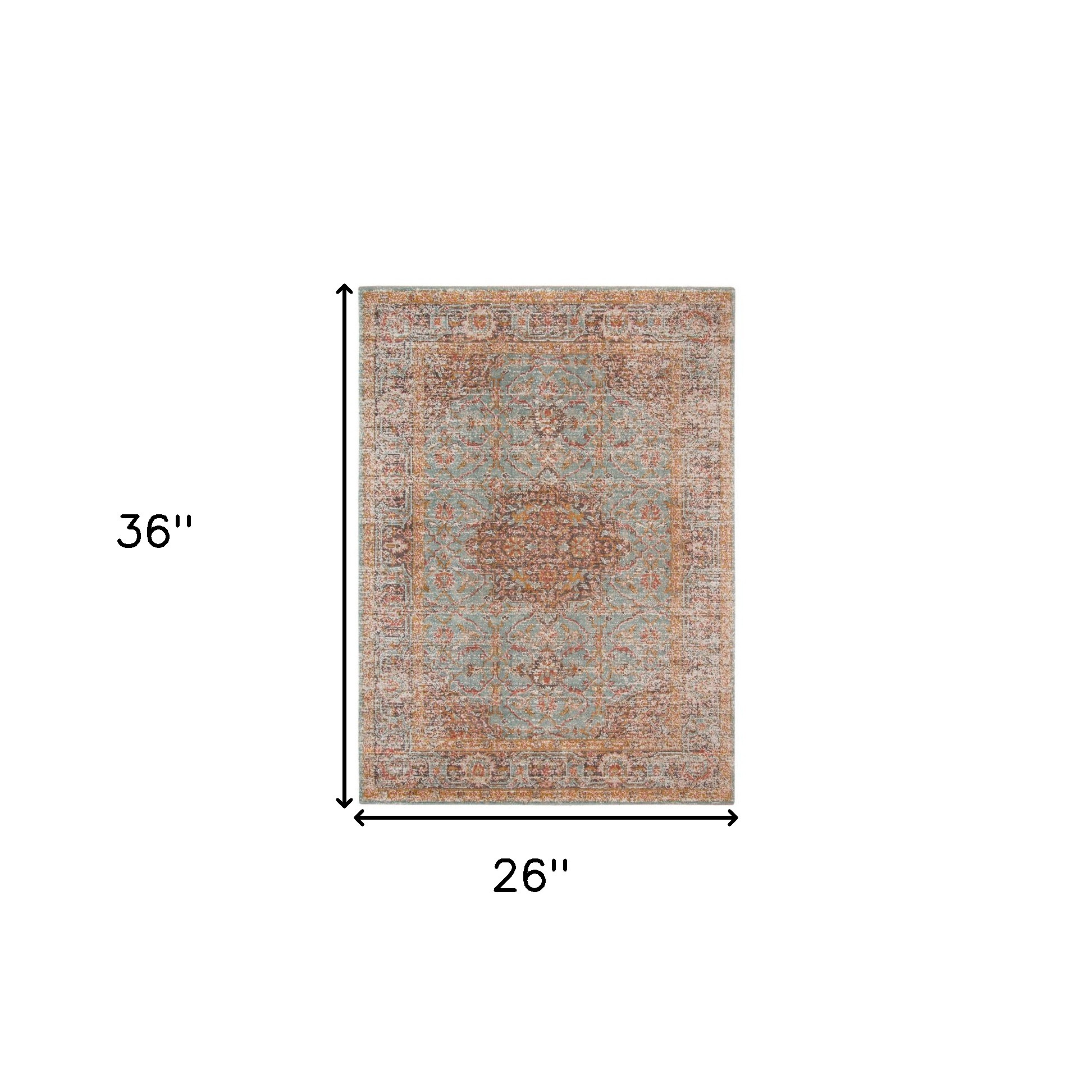 This 2-foot x 3-foot teal red and orange medallion area rug, is a great way to add warmth to a room. Ideal for spaces with kids and pets, this rug is stain resistant to help repel dirt and spilled liquids. Built to last, this rug crafted from polypropylene fibers is known for its durability and long lasting appeal. Rugs are a great way to showcase your style, hide imperfections, warm your home and reduce noise. This smaller sized, traditional styled rug is just what you need for your walkway, bedside, in front of door, cabinet, refrigerator, or chair. 26-inch h x 36-inch w x 0.15-inch d.